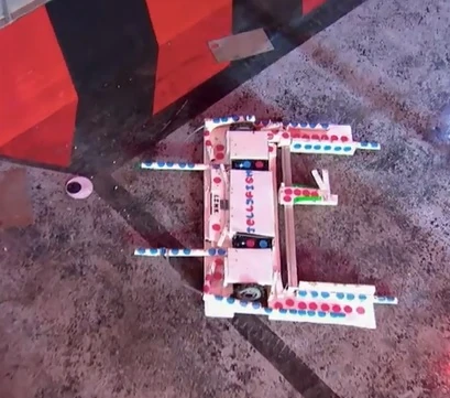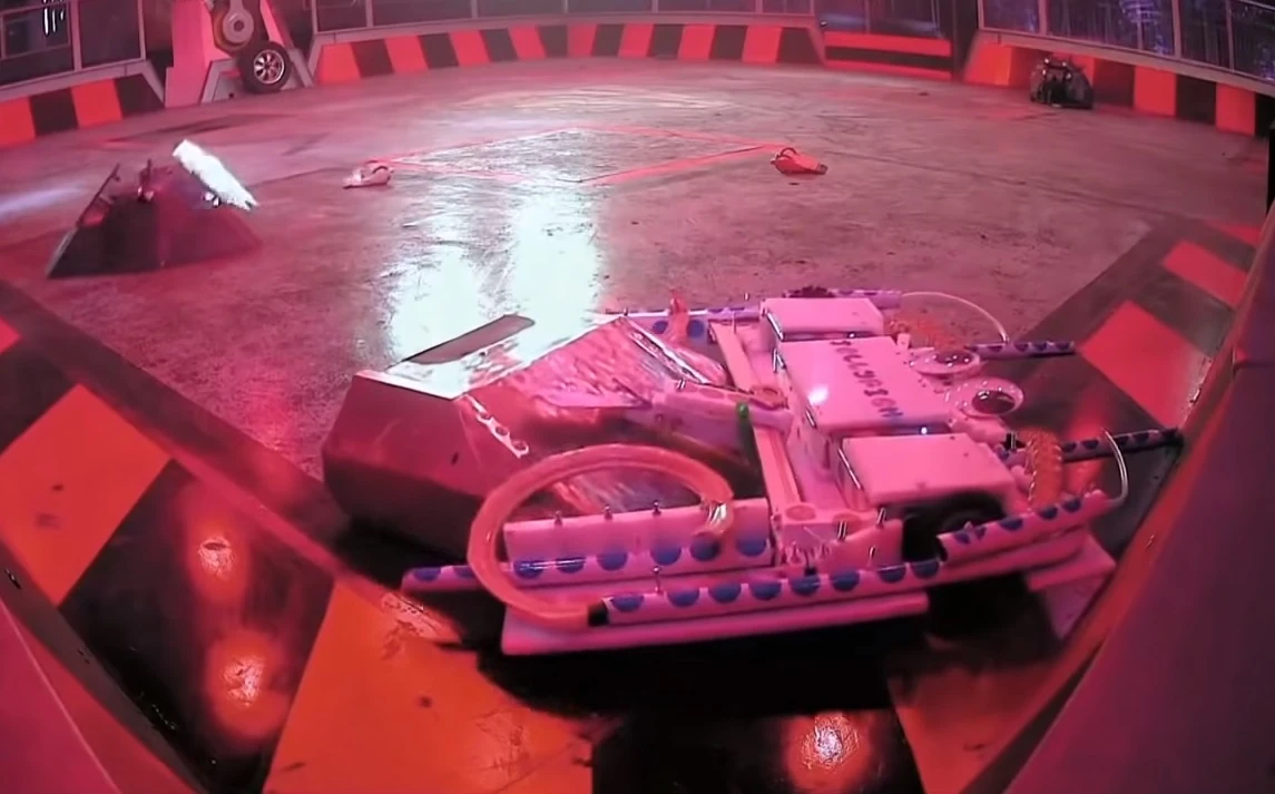 When the battle began, it was immediately scooped under and thrown against the wall by Rapid, before being collected by Terrorhurtz. Jellyfish lingered close to the wall as Rapid pushed it over the Flame Pit, with Terrorhurtz getting underneath and axing it close to the Arena Tyre.