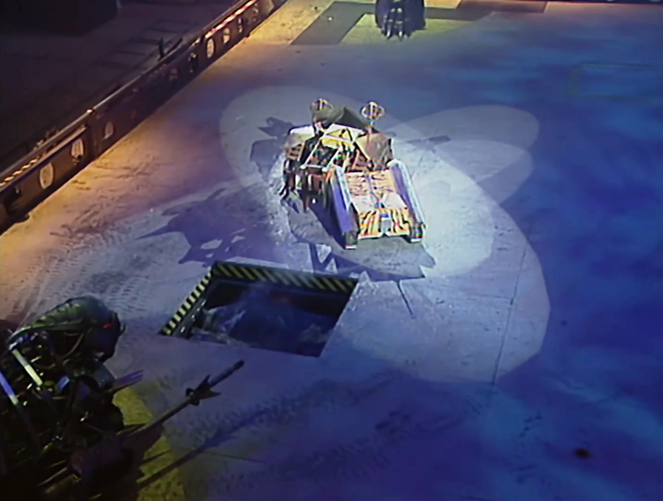 Kater Killer later entered the Sumo Basho tournament, pitting it against Shunt. Kater Killer's tracks should have given an advantage with extra traction, but Kater Killer exposed its side, easily allowing Shunt to push one track off of the platform. It was fortunate for Kater Killer that Shunt took its time in adjusting its position before finally pushing it off. Overall, Kater Killer lasted 14.03 seconds, giving it a respectable 6th place, even if much of that time elapsed with Kater Killer on the edge of the ring, immobile.