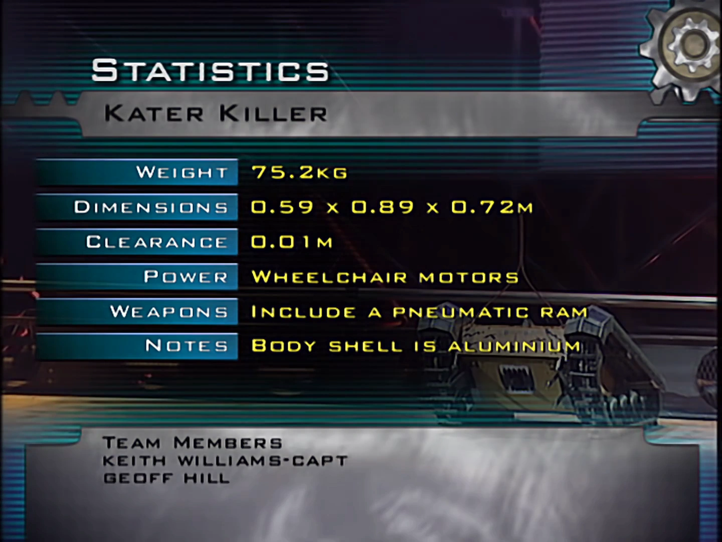 Kater Killer was a tracked box-wedge shaped robot which was entered by Team KaterKiller in Series 3 and 4 of Robot Wars. Kater Killer lost in the first round of both series it fought in, and also competed in the Sumo Basho competition, finishing in 6th place. Kater Killer was then succeeded by Kat 3 with much more success.