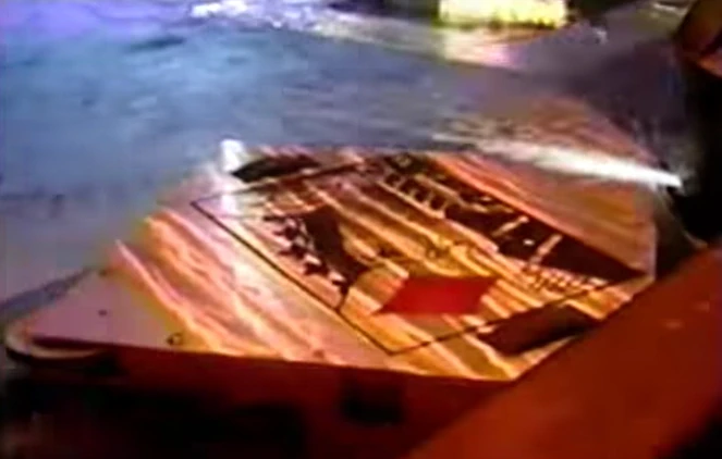 King of Diamonds struggled to drive away from TriceraBot 3.0, briefly pinning it against the wall as TriceraBot 3.0 drove round and attempted to line it up near the Pit. It hit TriceraBot 3.0 a few more times before the latter backed into Shunt and rammed King of Diamonds out into the middle of the arena; with King of Diamonds hitting TriceraBot 3.0’s sides and rear in the process. Eventually, King of Diamonds was pushed towards the Pit and lifted again by TriceraBot 3.0, before finally being shoved in after spending a few seconds suspended over the edge. This eliminated King of Diamonds from the US Championship.