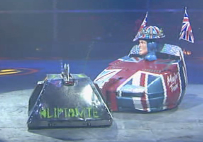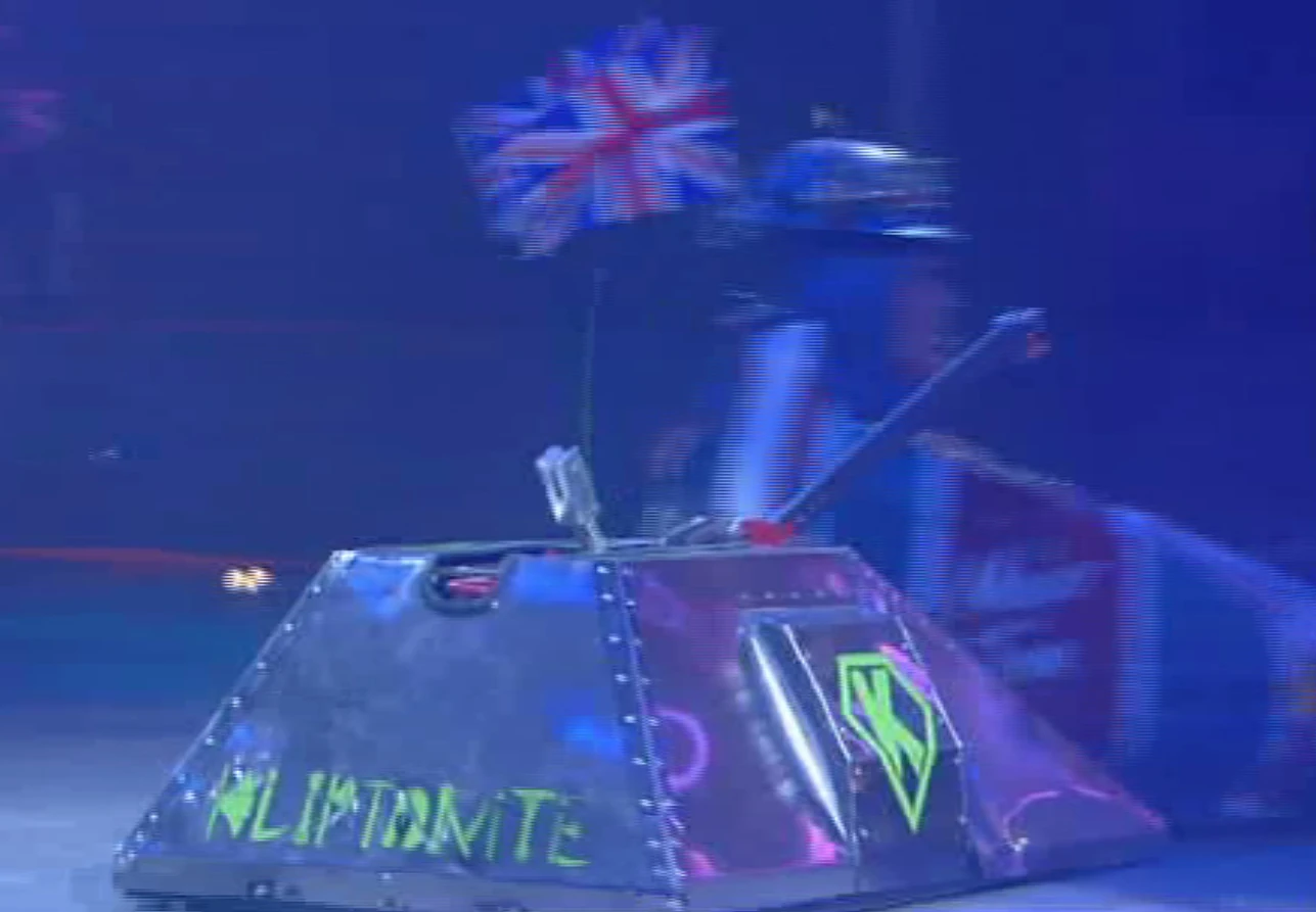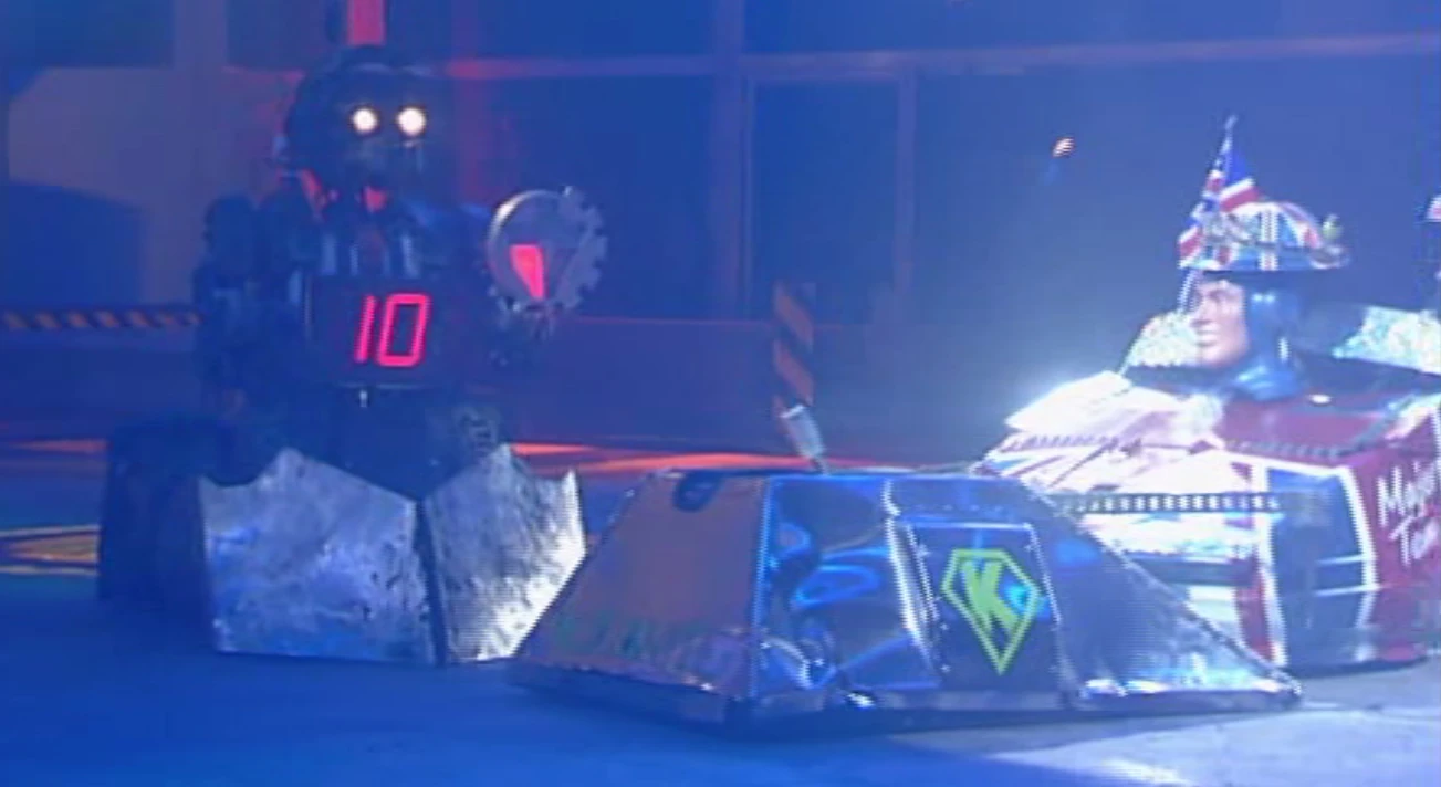 When Refbot's count completed, Matilda reversed into Kliptonite, throwing sparks off the stainless steel shell. Sir Killalot crumpled the back end, and Matilda carved into Kliptonite's body. Sir Killalot held it aloft, allowing Matilda to cause more damage, before throwing Kliptonite across the arena. Matilda ruined the back end of Kliptonite, which was held over the flame pit before Sir Killalot finally pitted it.