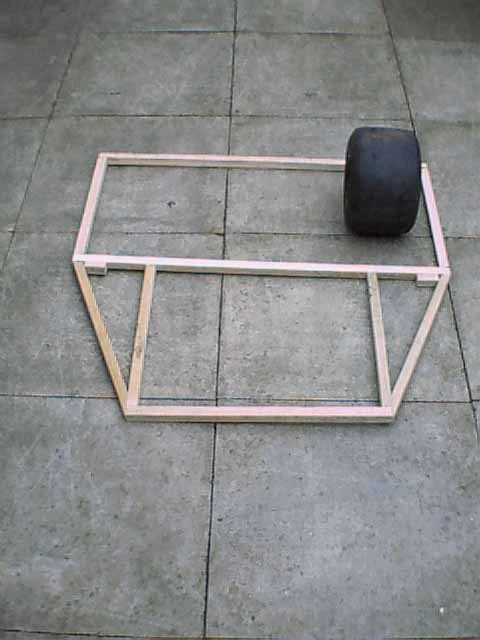 A mock-up chassis for Kruel Intent, with one of their go-kart tyres for scale