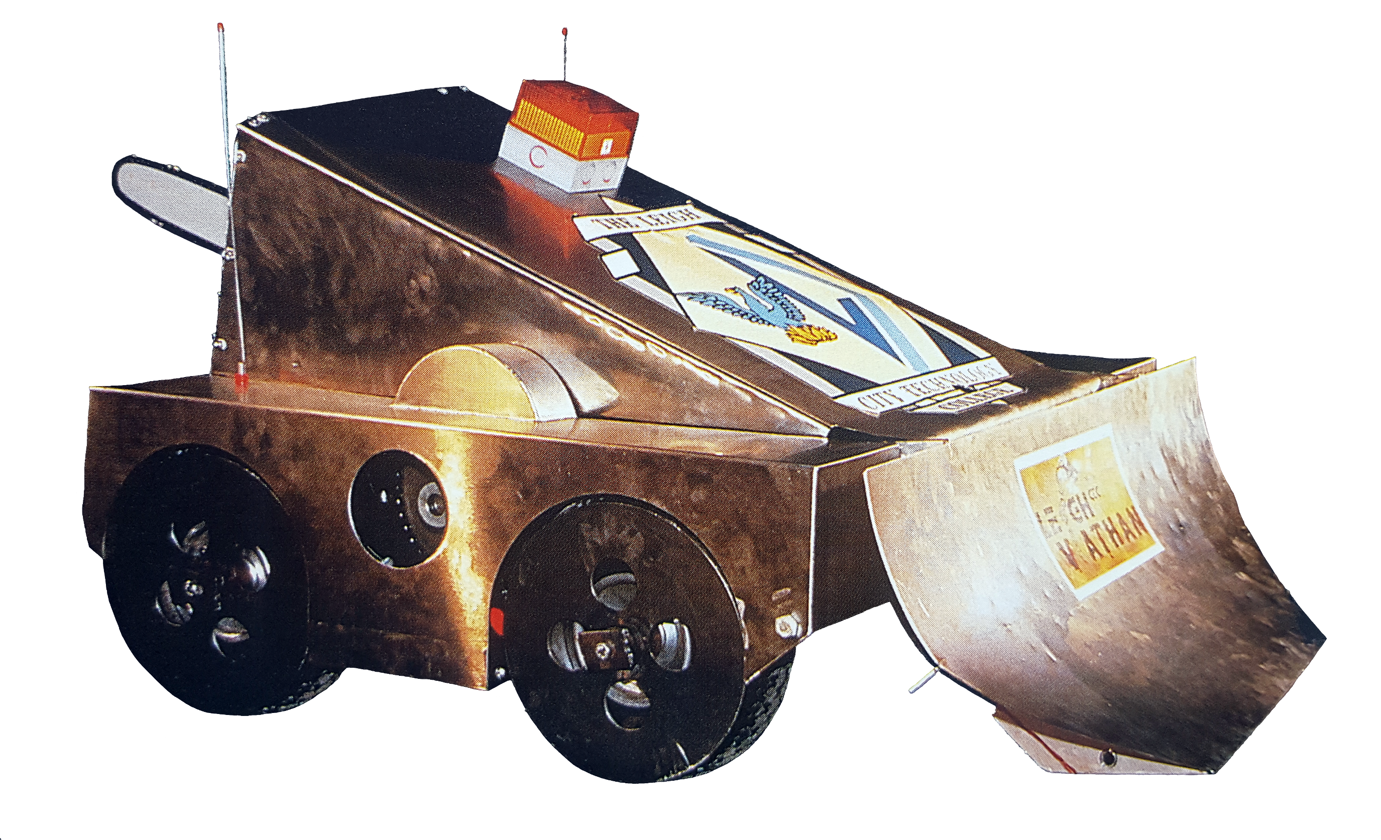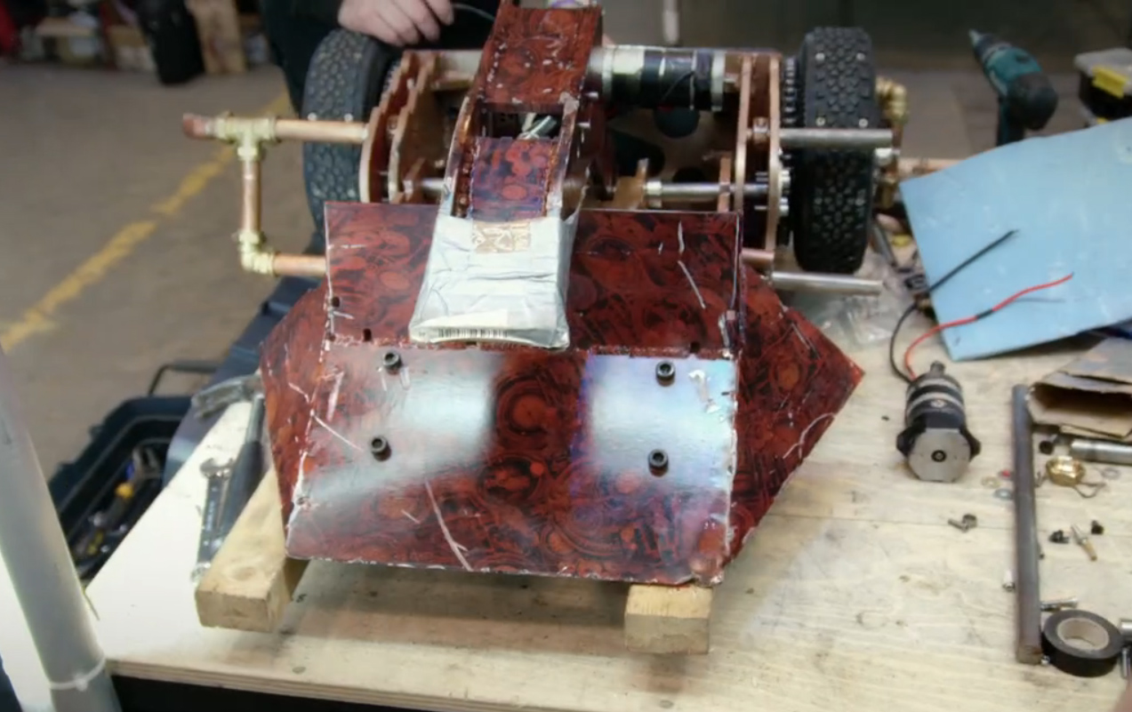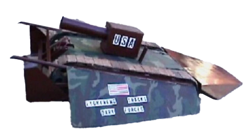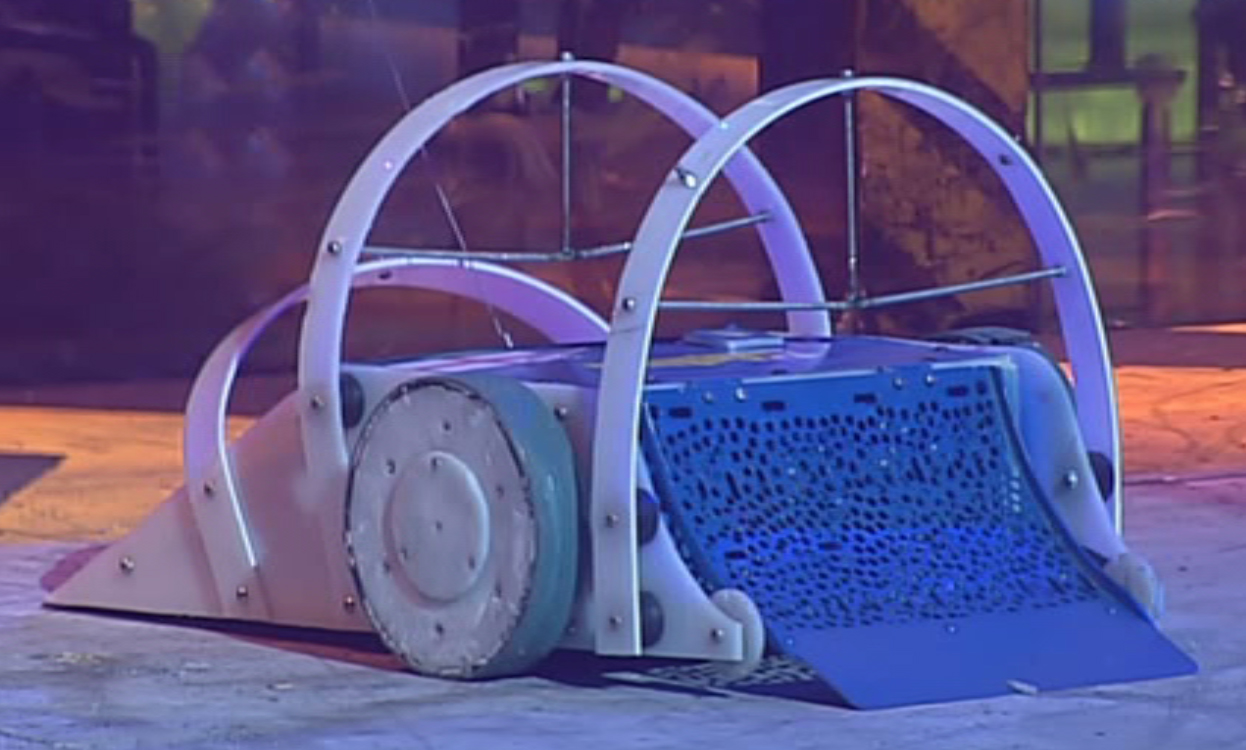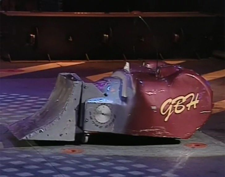 | G.B.H. | Series 2, 6 | Original version had a front-mounted pneumatic scoop capable of lifting 12 stone. GBH 2 featured a rear scoop-like flipper, again pneumatically-powered, which was used alongside a forward-facing front-hinged flipping arm. Series 2 Semi-Finalist under its original incarnation. | The original Series 2 incarnation of G.B.H. |