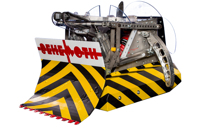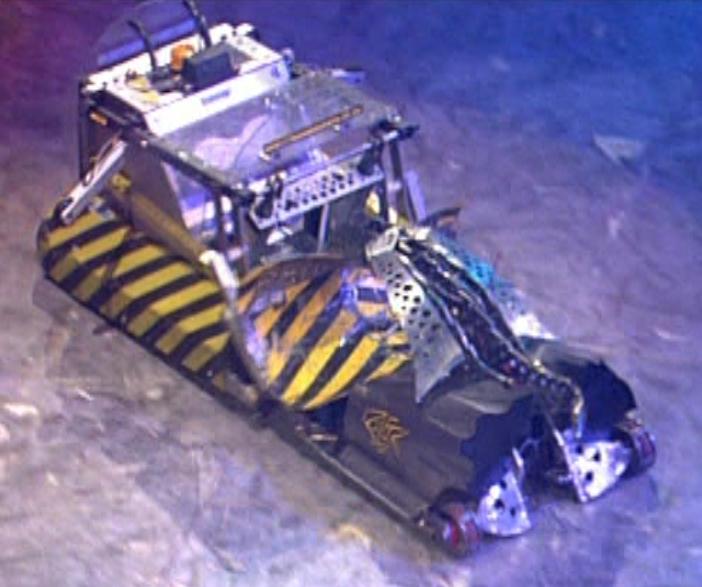 | Behemoth | Series 2-10, Extreme 1-2 | Only scoop-wielding robot to hoist opponents out of the arena. Combined with an axe between Series 5-7. Capable of acting as a srimech in Series 8-10, where the weapon was usually referred to as a low-pressure flipper. The regular titanium bucket scoop was made interchangeable with a set of grabbing arms and two aluminium anti-spinner ploughs in Series 9-10. Third Place finisher in Series 10 and First World Championship runner-up. | |