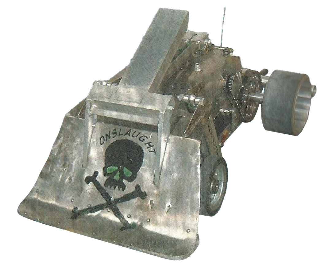 | Onslaught | Series 3-5 | Originally, the scoop was a static weapon, being converted into a pneumatically-operated lifting type from Series 3 onwards. A front-hinged self-righting mechanism was added to the top of the scoop in Series 4, along with a revised pneumatics system. Quoted lifting capacity of 140kg in Series 3, later being shown to lift greater weights than this in combat. Series 4 Southern Annihilator runner-up. | |