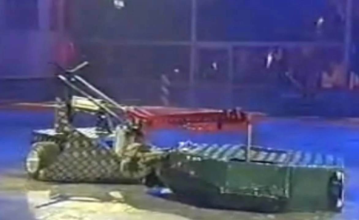 Immediately, it drove towards Bamm Bamm, but without bumping into it, before turning round and dodging a hammer blow from the latter. Lizzard spun in the centre of the arena, again dodging an attack from Bamm Bamm, but had one of its eyes knocked off by Bamm Bamm as it pushed the latter into an angle grinder. It pushed Bamm Bamm away, before hitting it with the tail and dodging yet another hammer blow. Lizzard hesitated as it attempted to get a run on Bamm Bamm, before bumping into an entry gate and pushing Bamm Bamm around in circles. It succeeded in pushing and pinning Bamm Bamm into an empty CPZ, sustaining damage to its shell before letting Bamm Bamm free.