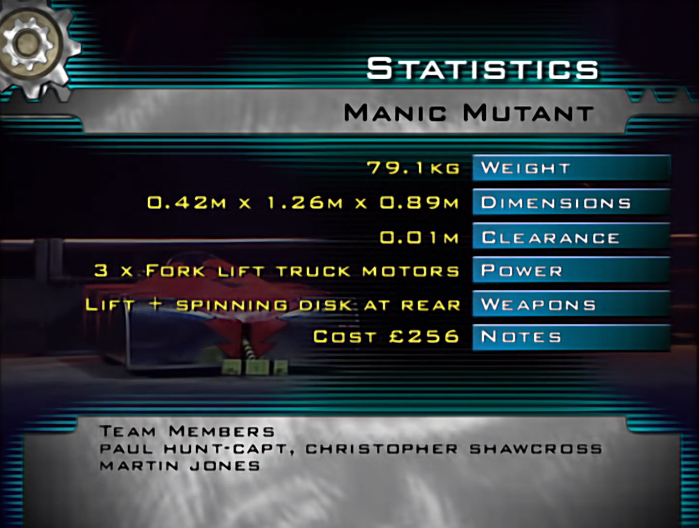 Manic Mutant was the original entry from The Manic Mutants, which fought in Series 3 of Robot Wars. It lost its only battle in the first round after being flipped over by Gravedigger.