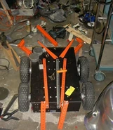 MechaDroid was a four-wheel drive, box-shaped robot armed with an axe, a pair of front pincers and a steep rear wedge. It was painted black and red, and designed to run inverted as a result of its low body and exposed wheels. MechaDroid's axe head was especially unusual in that it featured a bladed end at the front, and a spiked pick on the rear, with Walter Martinez explaining that the pick would act as a secondary pincer should MechaDroid be flipped over.