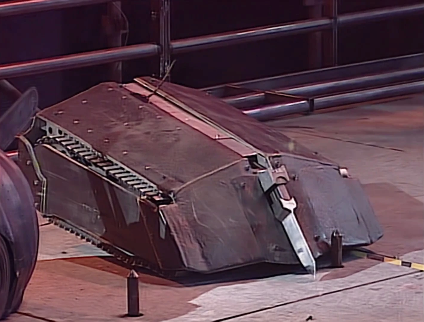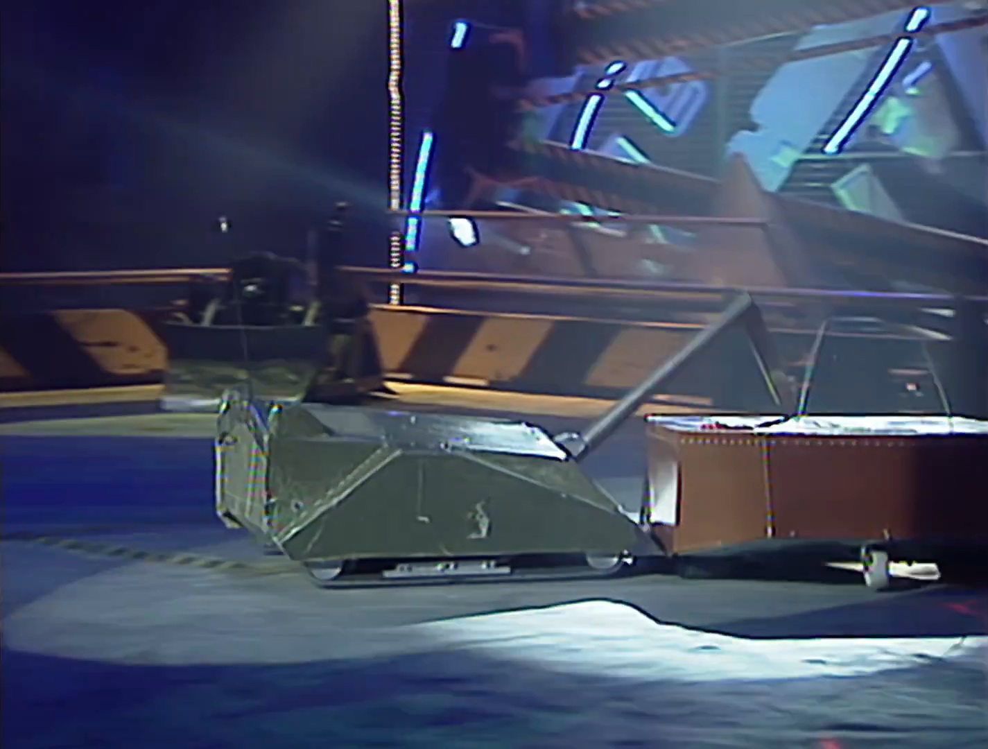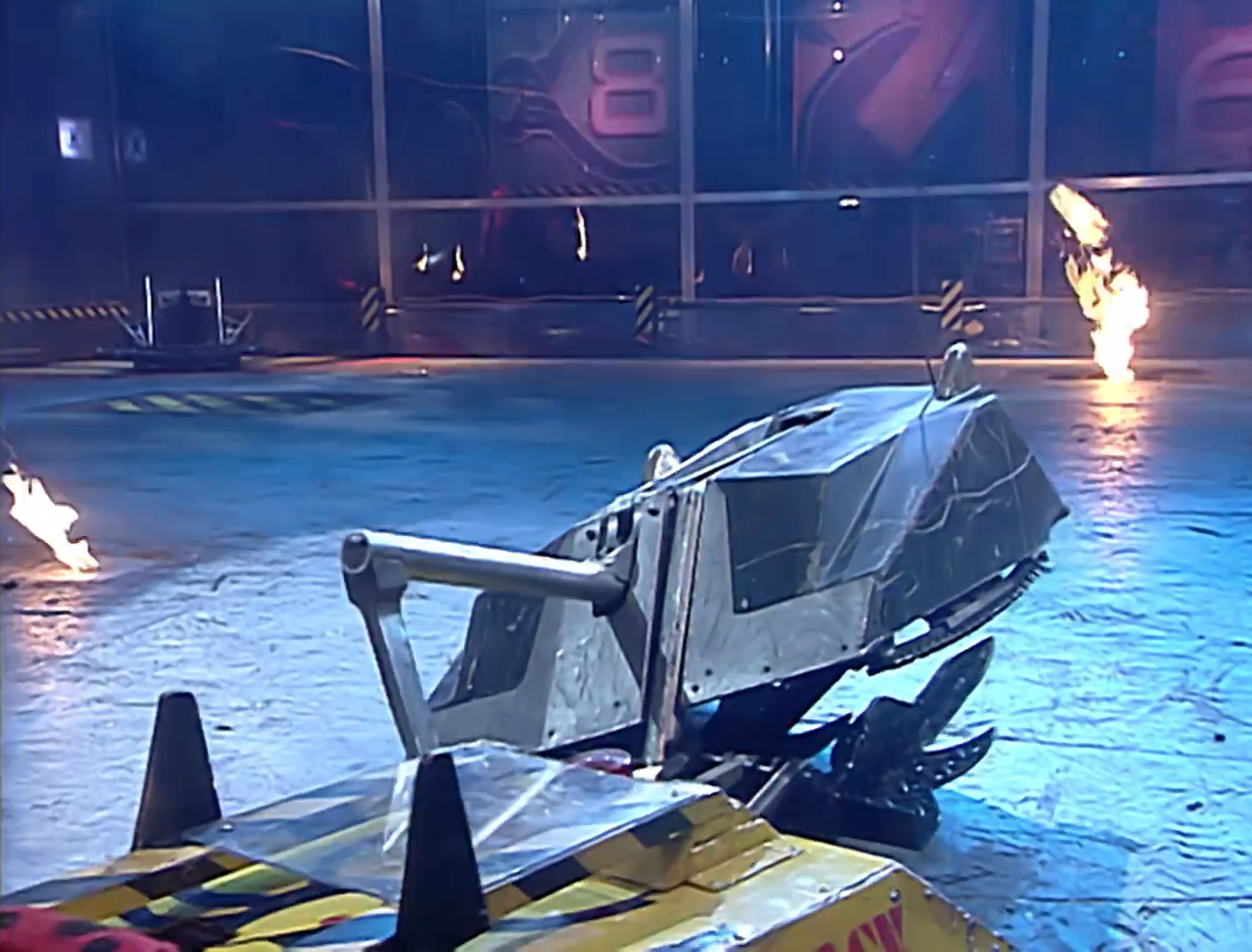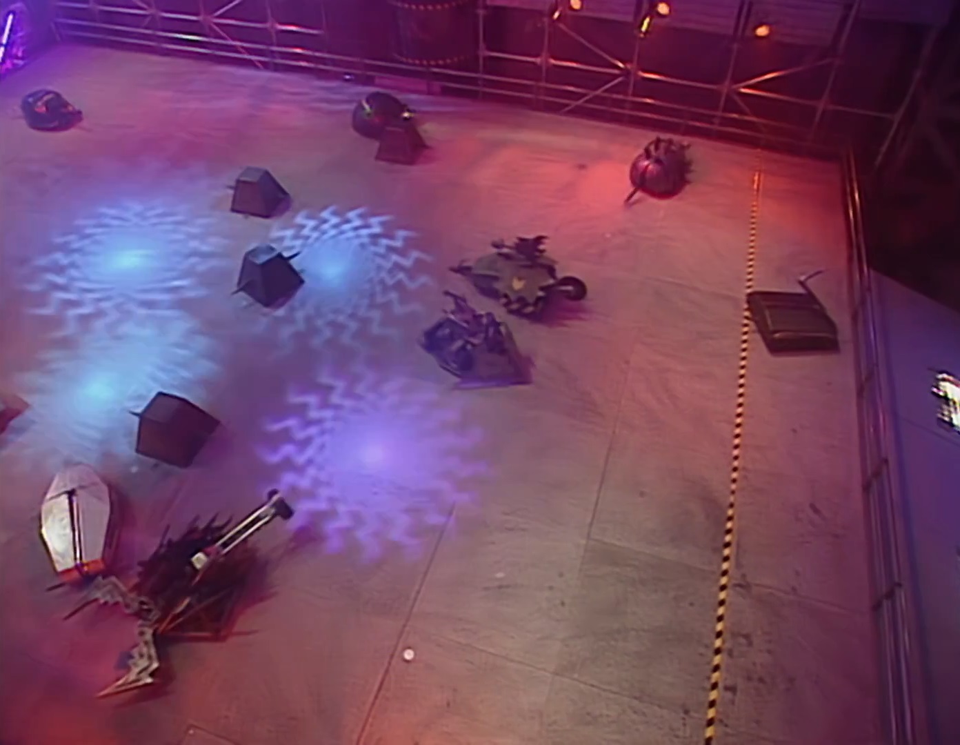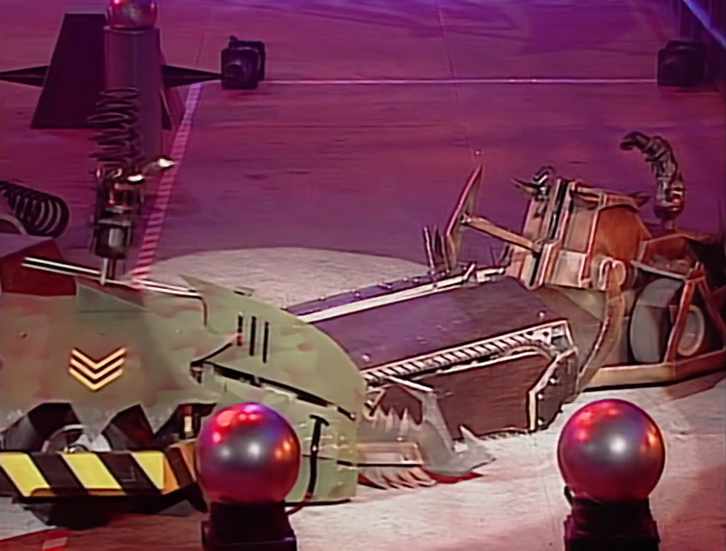 According to Tectonic Robot Wars, all roboteers had been informed beforehand that the spikes would not be used for the Pinball stage.[7] Despite this, Rob Knight accepted that these hazards posed a major threat to Mortis' tracks.