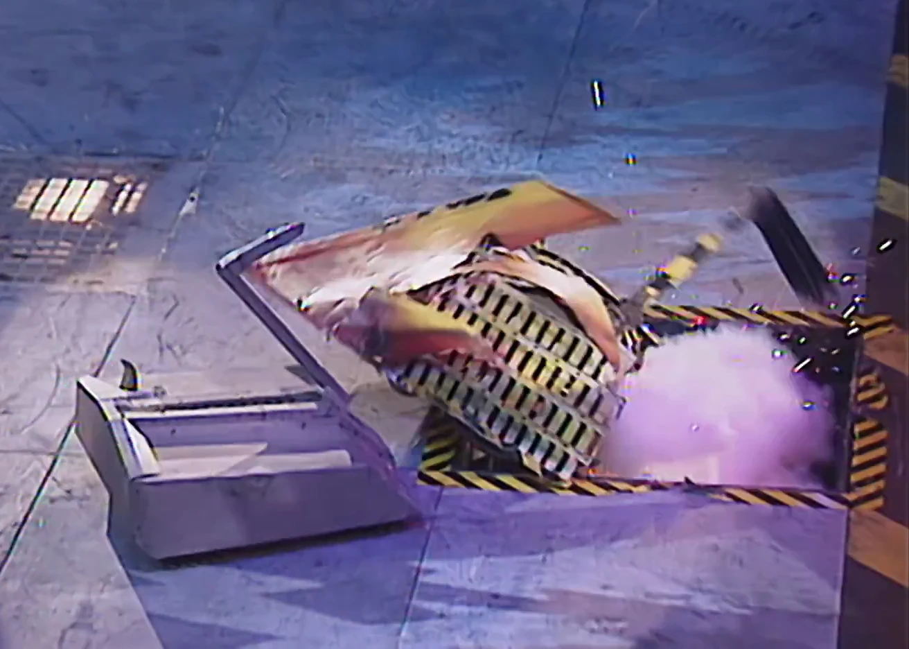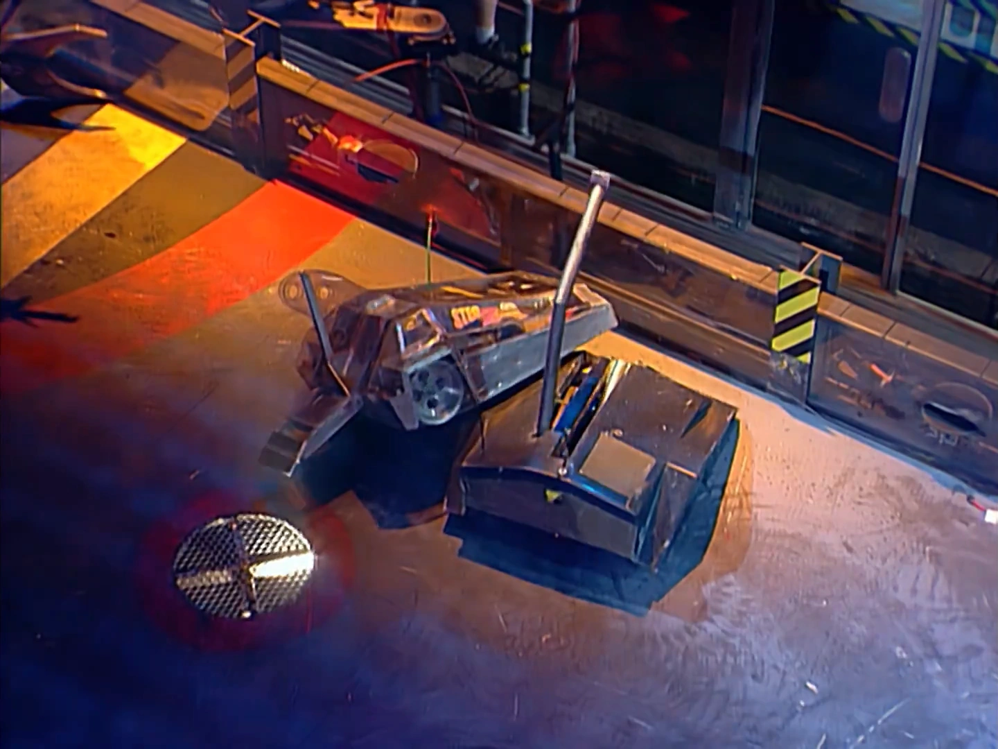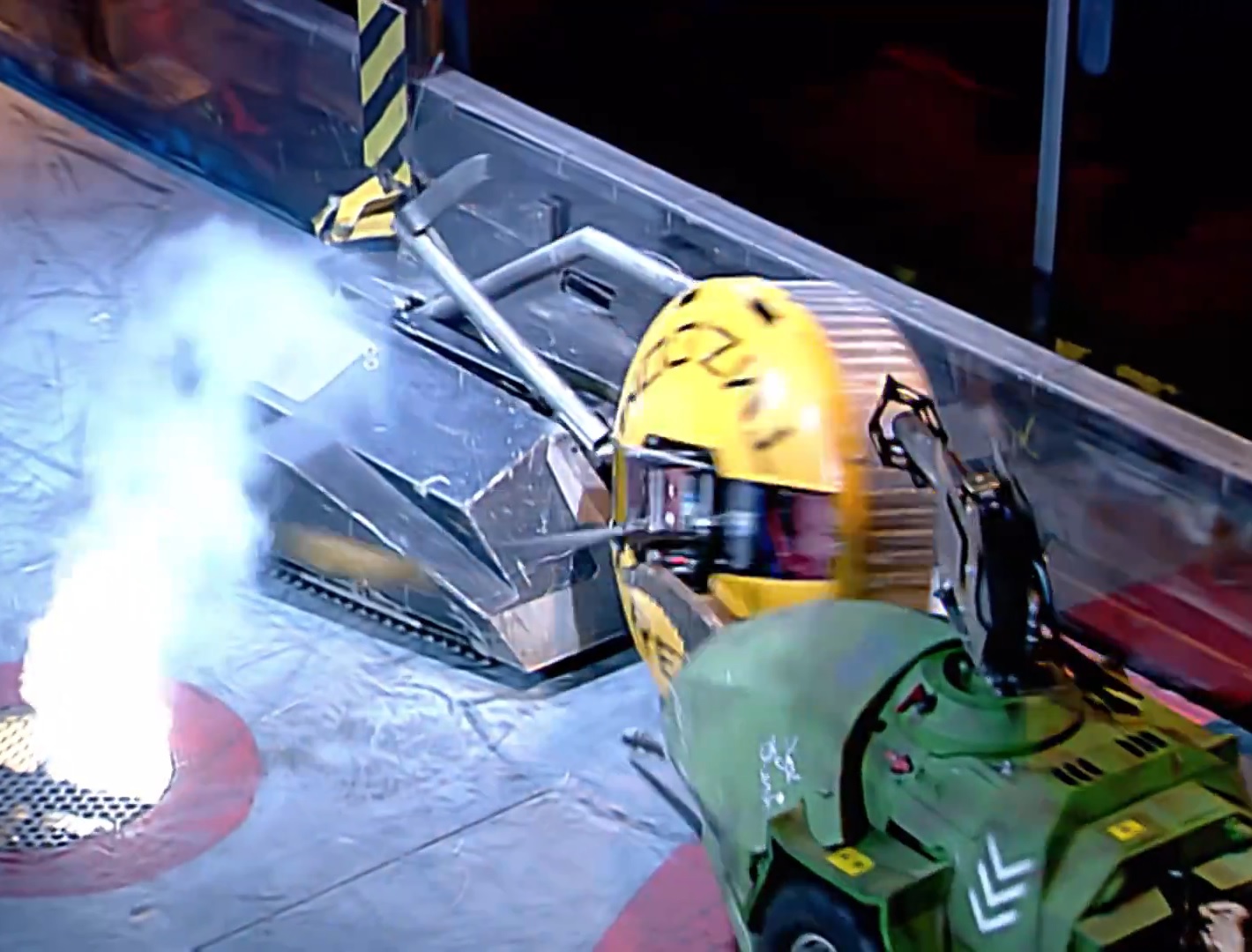 Mortis, immobilised on the side bars in its controversial Heat Final against Recyclopse