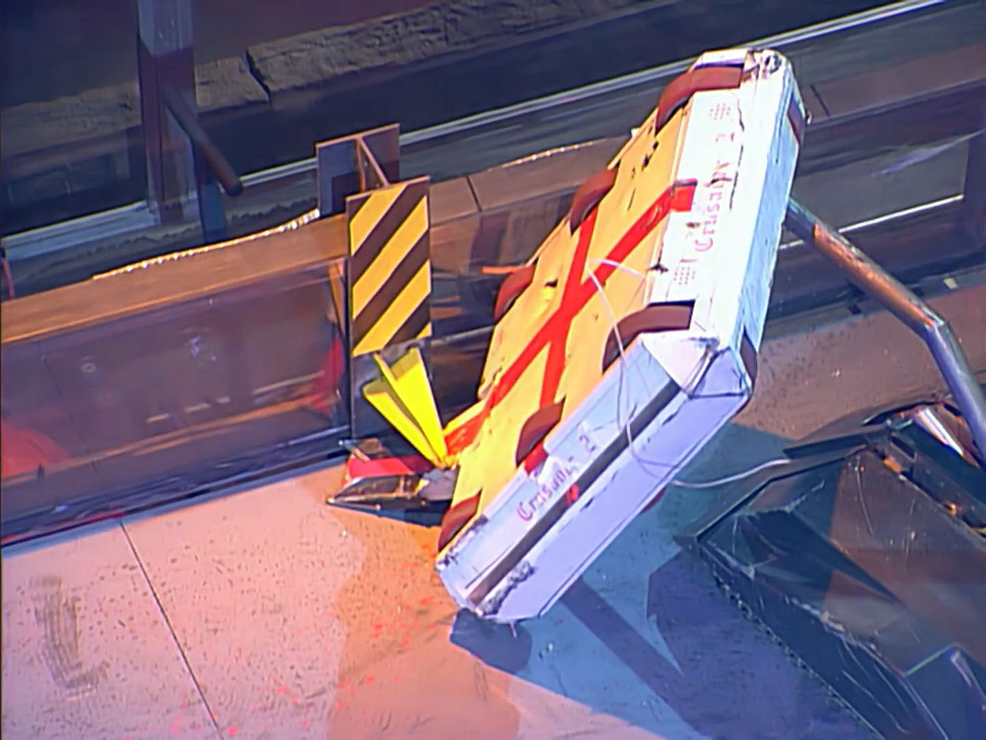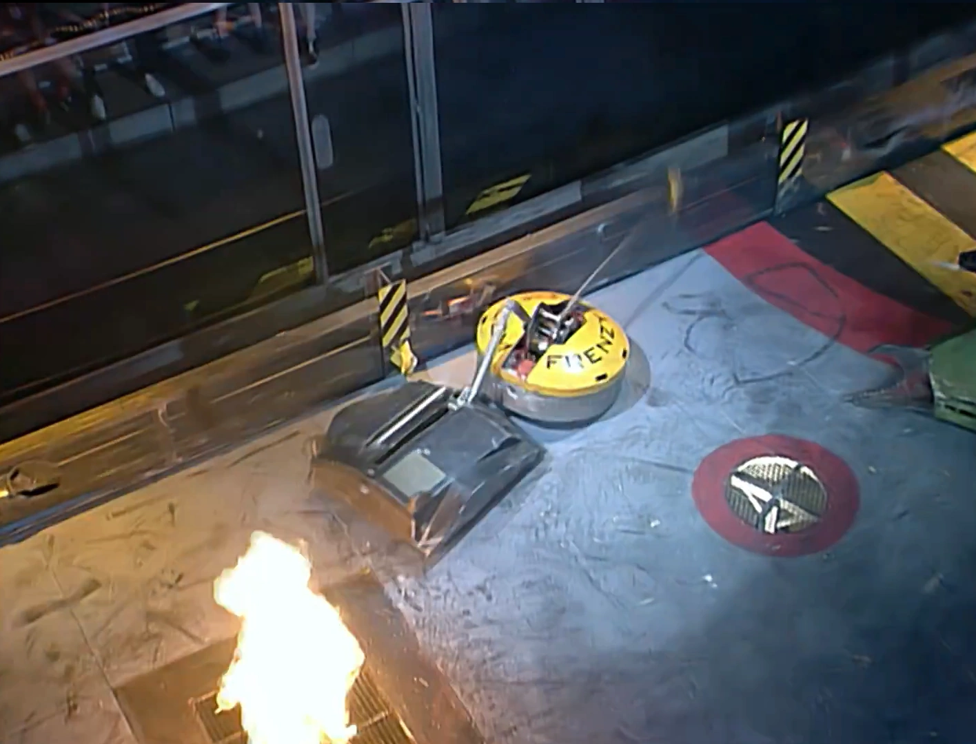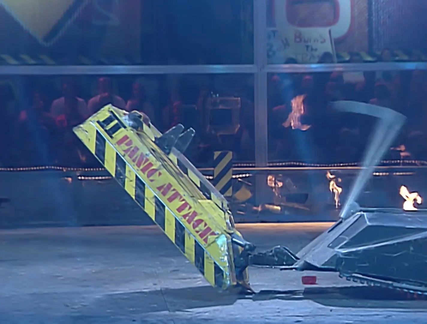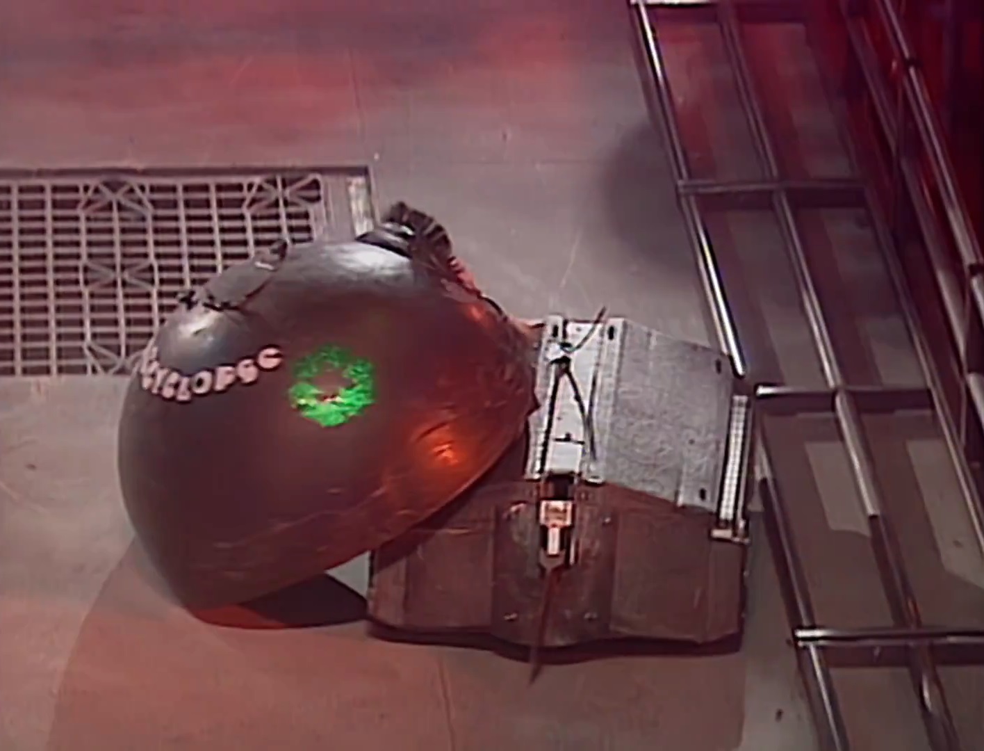 Mortis, immobilised on the side bars in its controversial Heat Final against Recyclopse