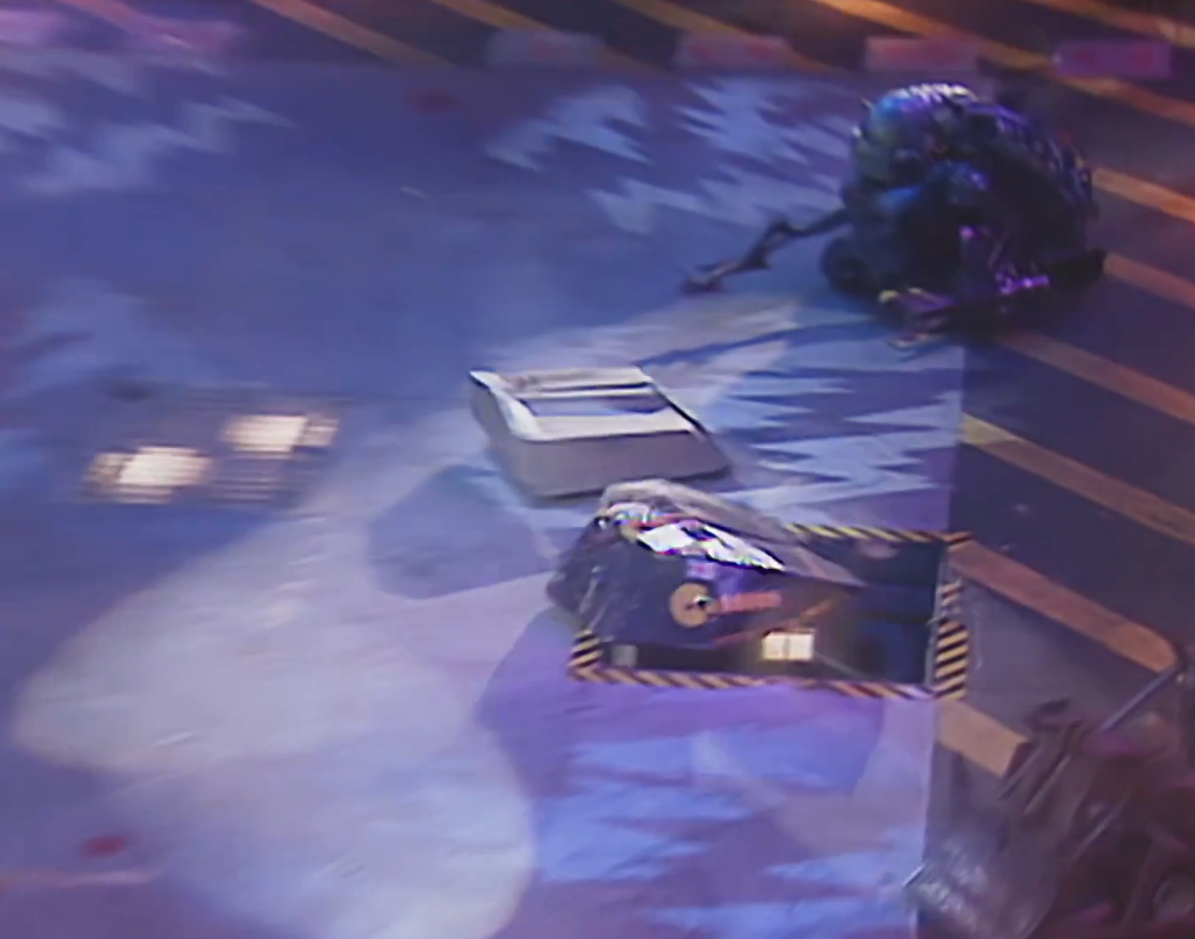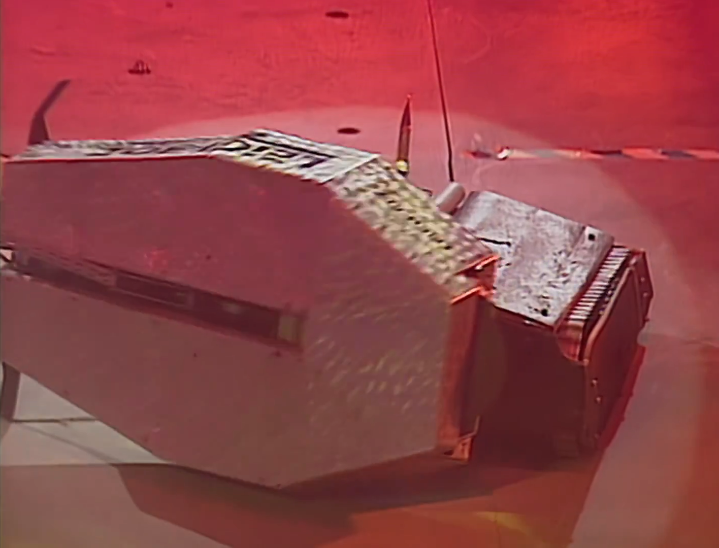 Mortis' right track is damaged during its first Pinball attempt
