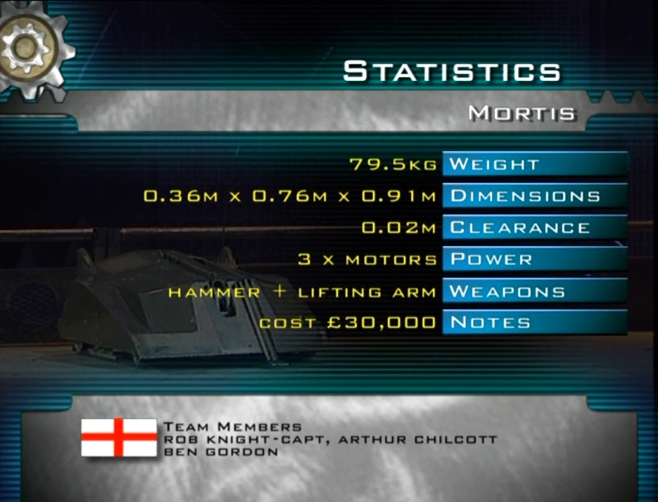 - Mortis was the first UK robot to attempt to self-right with an axe, which it first tried to do so during its Gauntlet run in the Series 2 Semi-Finals.