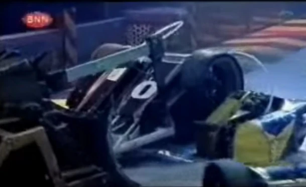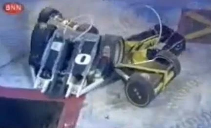 At the start of the battle, ODT-Zero slowly moved across the arena towards and over the Drop Zone square, where it was rounded up, chased and blocked by S.O.Xbot. Elevation and ODT-0.33 eventually joined the fray, surrounding and trying to push ODT-Zero towards the Flame Pit; after being lifted by Elevation, ODT-Zero reversed and drove itself over the Floor Spinner. It proceeded to bump into Elevation and S.O.Xbot again, but got underneath the former as the two thirds of √3² tried to impede its movements. ODT-Zero was momentarily lifted onto one wheel by ODT-0.33, but again backed away and made a lunge for S.O.Xbot. Eventually, it pushed S.O.Xbot towards the Pit, but was almost pushed in itself by Elevation, and struggled for traction as both S.O.Xbot and Elevation tried to pit it together.