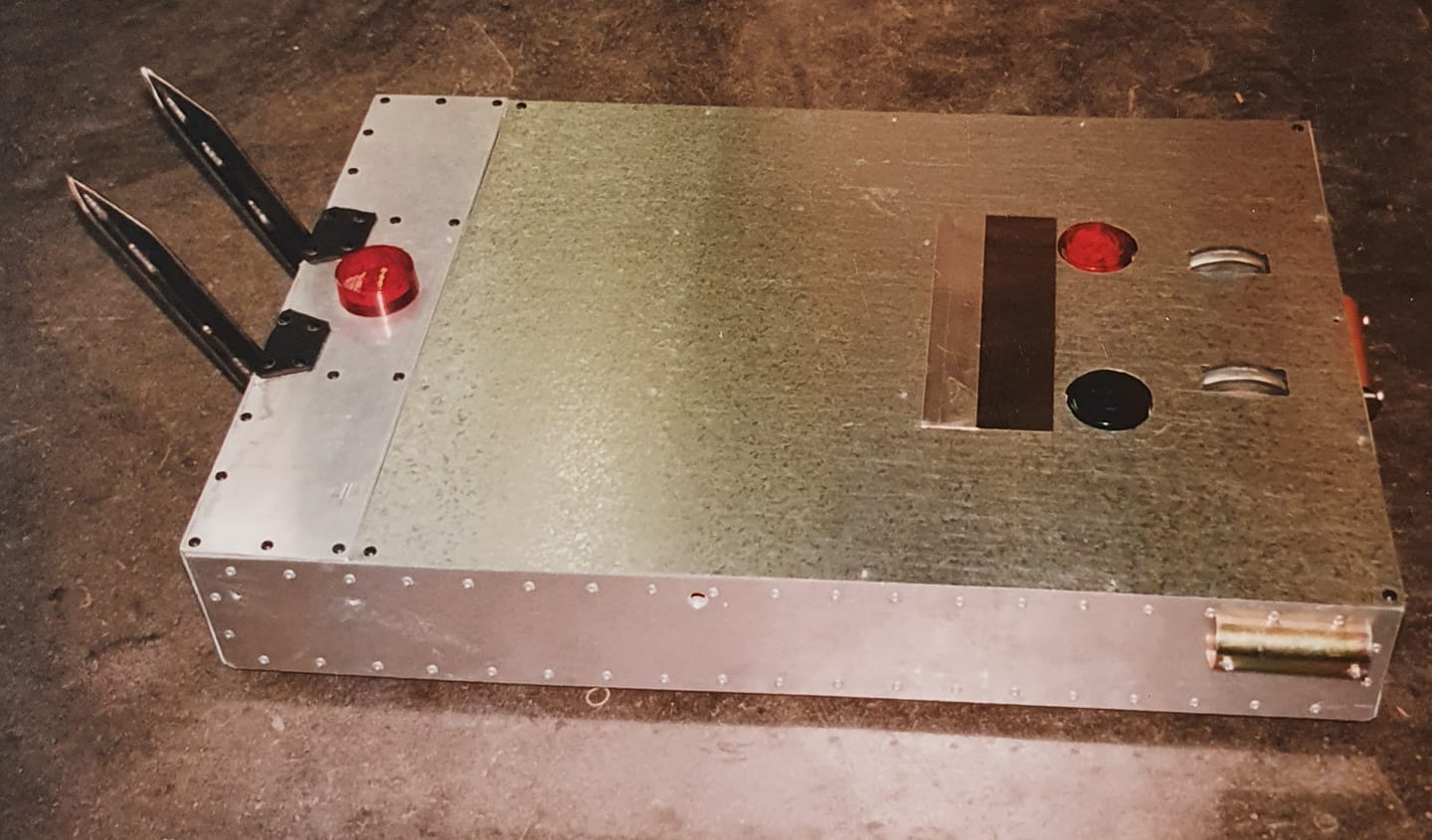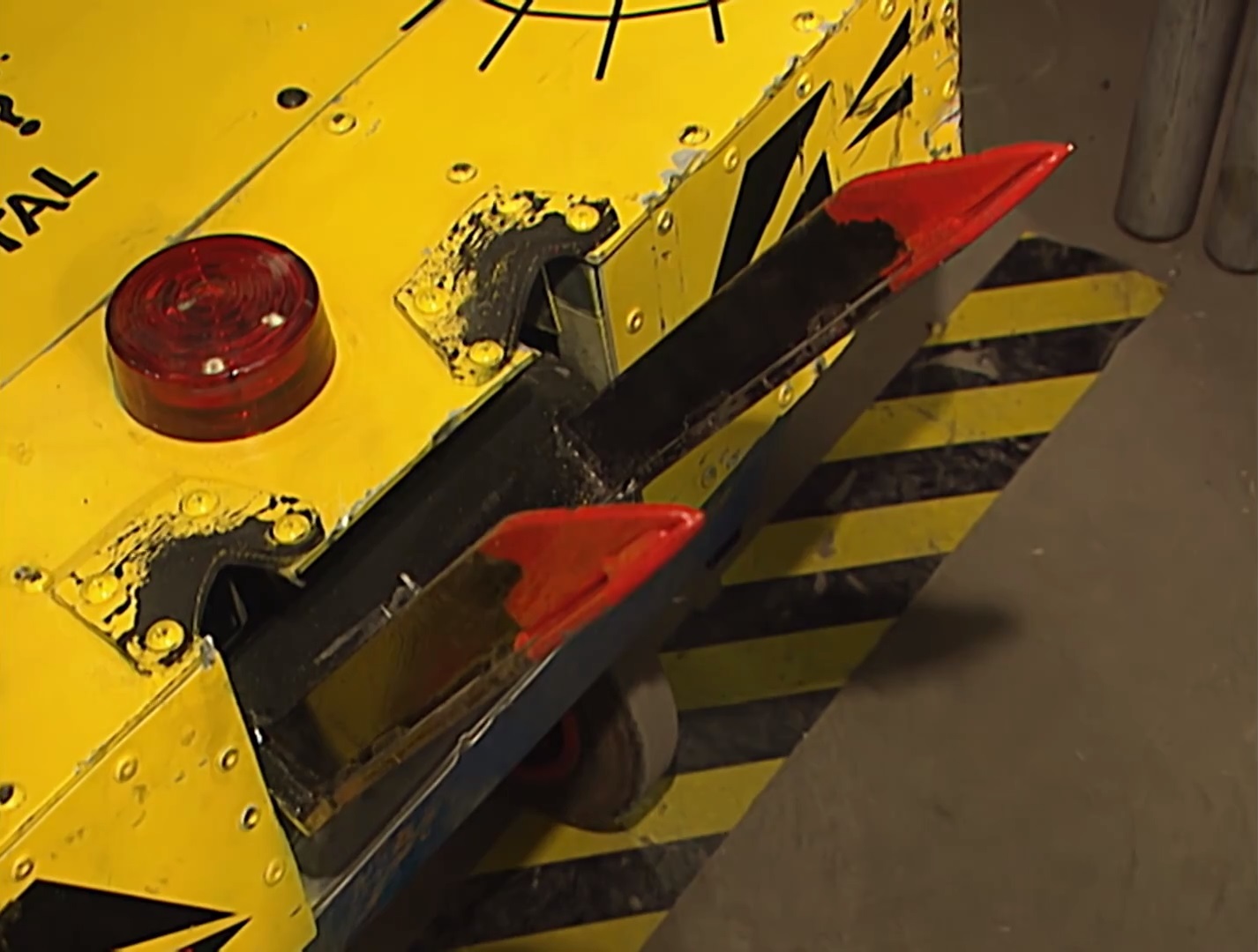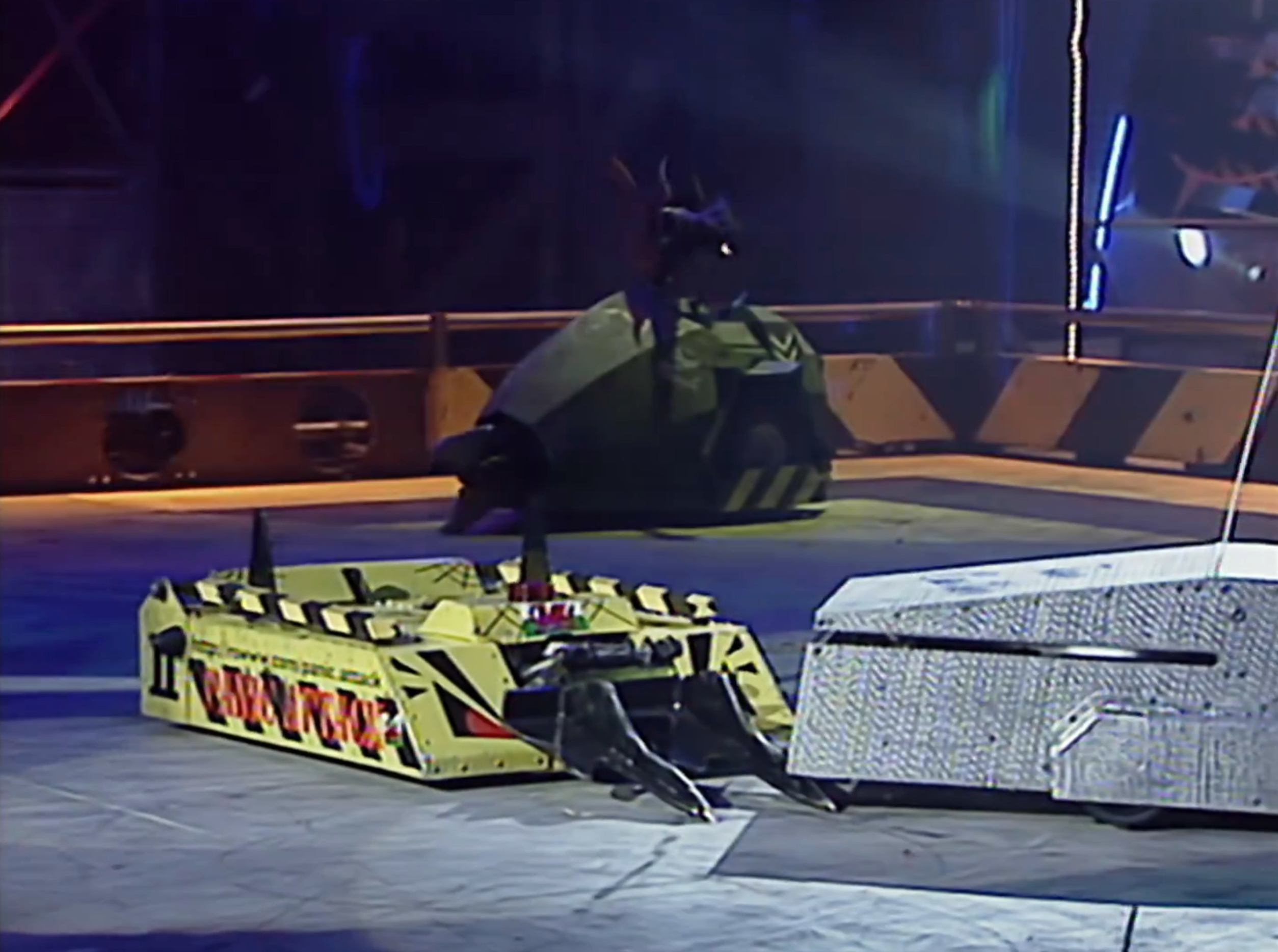In Series 2, it was simply a four-wheel driven 20 cm high rectangular box, driven by 750W Bosch windscreen wiper motors with two 24 Amp batteries, giving a top speed of 10mph according to Kim Davies, though the statistics board listed the top speed as 9mph. The robot was armed with a set of electrically powered 12' long lifting spikes. These spikes were powered by a homemade system integrating two 12 V (90W) Parvalux motors, and were capable of lifting a tonne and ramming opponents as well to great effect. The Series 2 version was the only version to use a homemade system, as subsequent versions used custom-made electronics.[3]