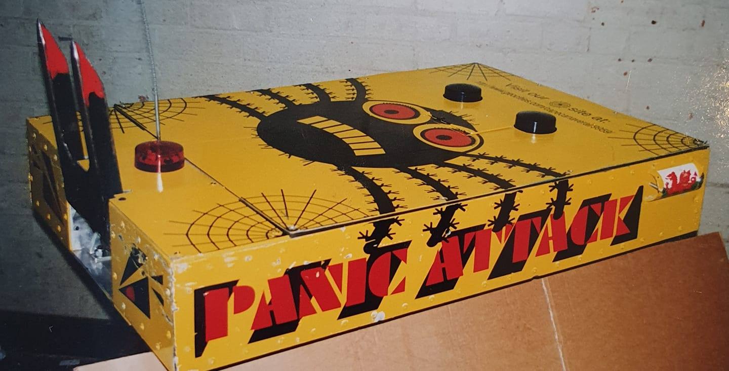 Kim Davies mostly built the original Panic Attack himself. After Series 2, Wicombe and Pritchard left the team, the latter creating a similar robot named Evil Weevil and Wicombe left the team as he did not have anything to do with the construction of the robot and was only there to fill the third spot and generally help the team out[29].