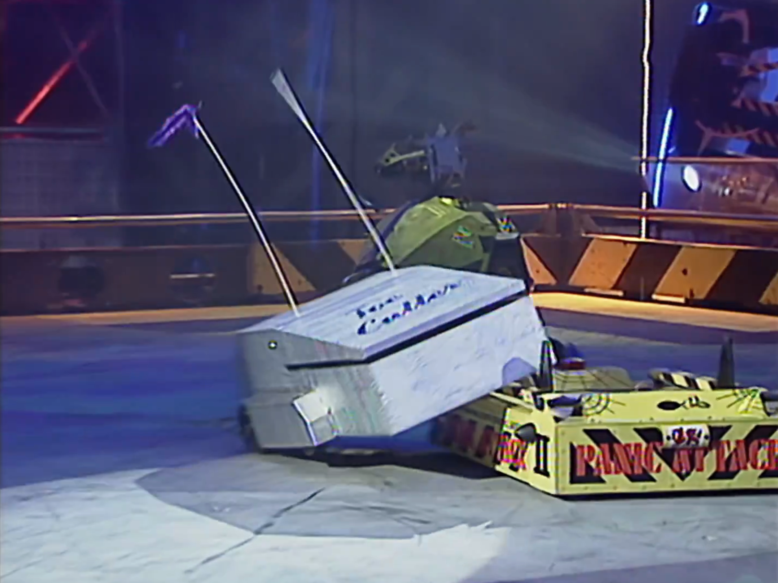 - Somewhat fittingly, Panic Attack was the first robot to successfully pit two opponents, pitting both Disruptor and Mortis. As it pitted Cassius later on, it also became the first robot to pit three opponents.
