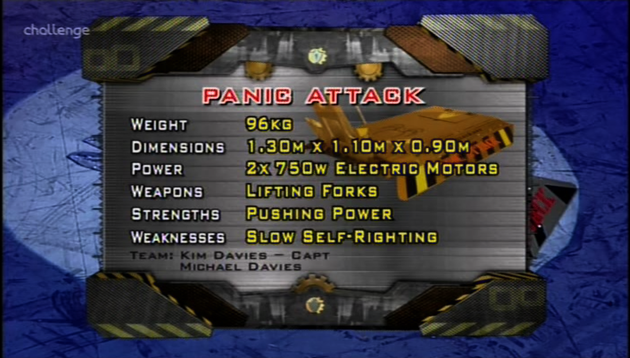 The captain of Team Panic Attack (formerly Team Panic) was Kim Davies, a maintenance manager from Cwmbran, Gwent. Davies was inspired to enter the show after watching the first series with his son, Michael, who suggested to him to build a robot and attempt to enter[25].