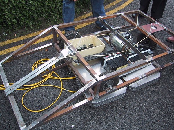 Pegasus was a remarkably large, long, box-shaped robot with a long wedge at the front. The design featured two driven wheels at the front and a third free-wheeling castor tyre in the back which was likely to aid in steering. It was armed with a narrow lifting arm powered by an electric linear-actuator. Its chassis was made of welded steel box-sections. According to the Son of Armageddon team's writeup of the auditions, Pegasus may have also been known as 'Skyflyer' at one point[1].