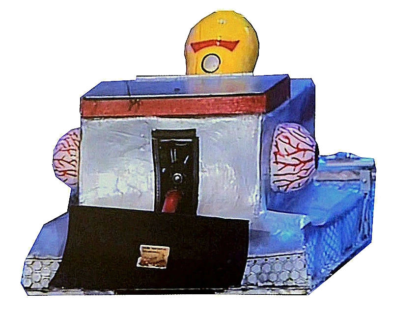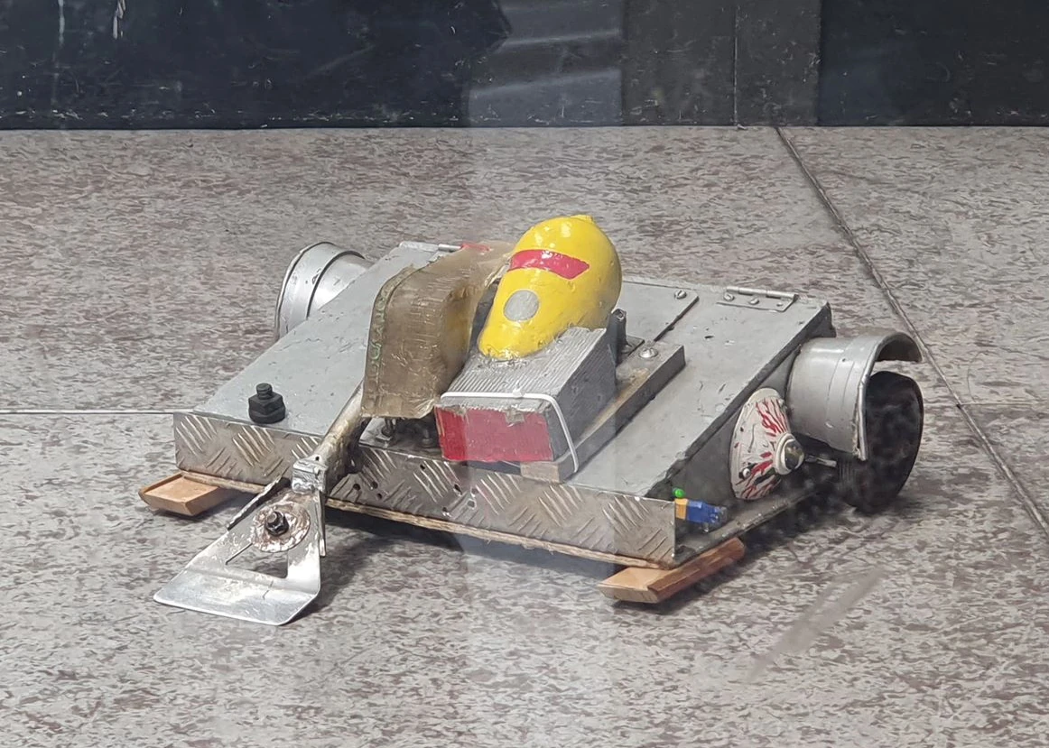 Piece de Resistance also featured spike weapons at the back and ran on tricycle wheels powered by windscreen wiper motors from a Mini car.
