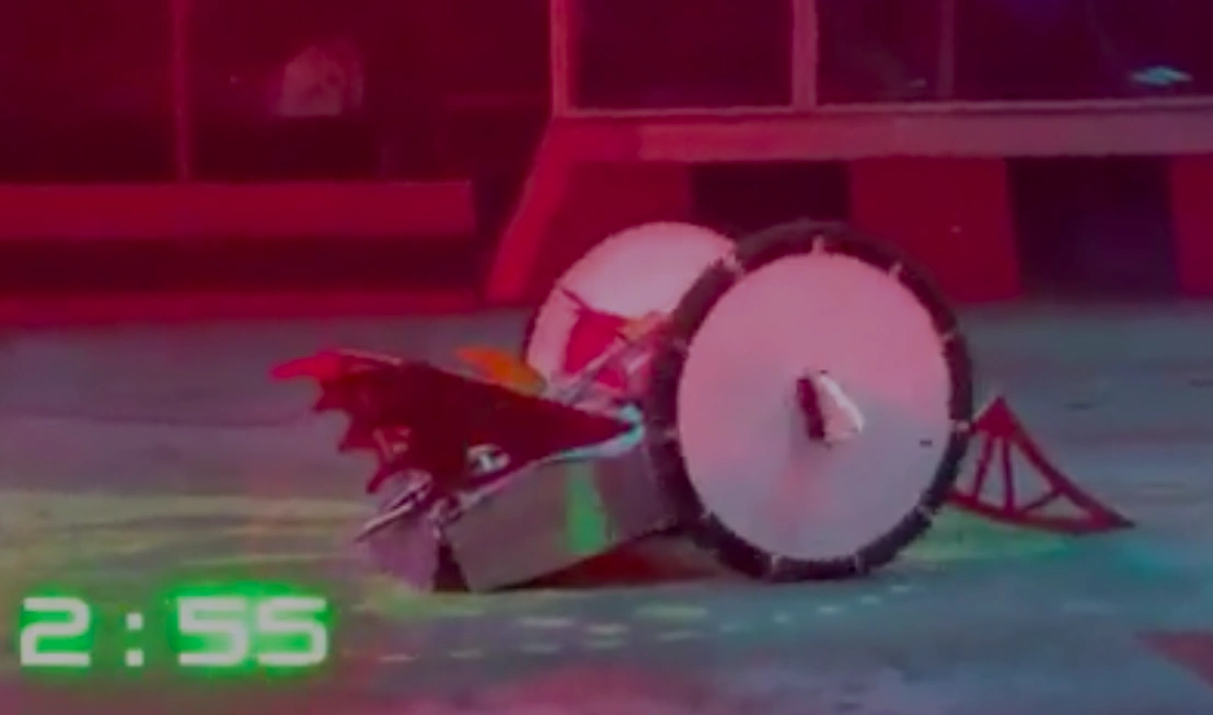 | Sabretooth | Gripping | Series 8 | Uses a single grabbing arm in combination with a steep wedge to grab opponents; the arm was also intended to enable the robot to self-right. Also featured a spinning drum on the other side of the machine. | |