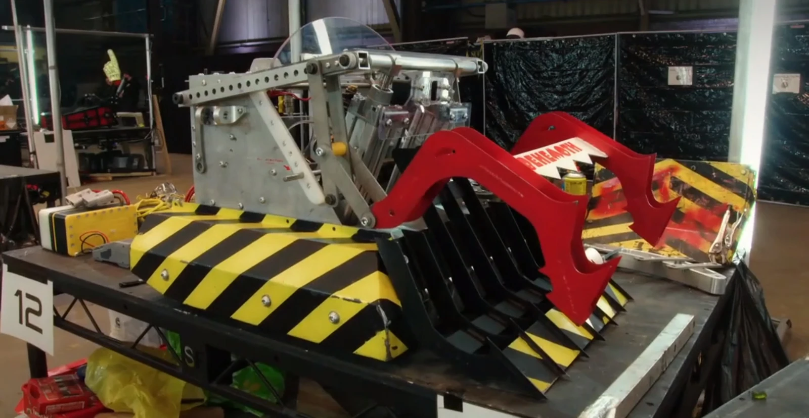 | Behemoth | Gripping | Series 9 | One of Behemoth's four interchangeable weapons was a pair of grabbing arms that held robots onto a lifting platform. Only used in its Series 9 Head-to-Head against Cherub, with the use of this weapon resulting in its loss and elimination from the series. | |