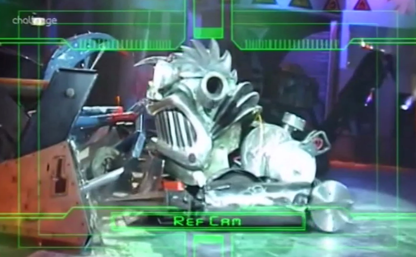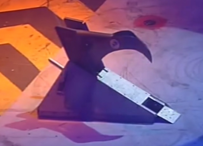Mantis pushed Pinser against the wall, almost tipping it over before the pit descended. Pinser surely pulled off the most powerful attack of the fight, crushing deep into the front end of R.O.C.S. and severing a hydraulic line, causing hydraulic fluid to flood the arena floor. The three machines drove to the other end of the arena, where a lick of flame caused an explosion of hydraulic fluid from underneath Pinser. The trio were stuck against the arena wall until Cassius Chrome split them. Pinser still could not gain full traction on the fluid-coated floor, and could only twitch in place whilst R.O.C.S. exhibited even less movement. Mantis, meanwhile, kept its distance and celebrated a potential victory.