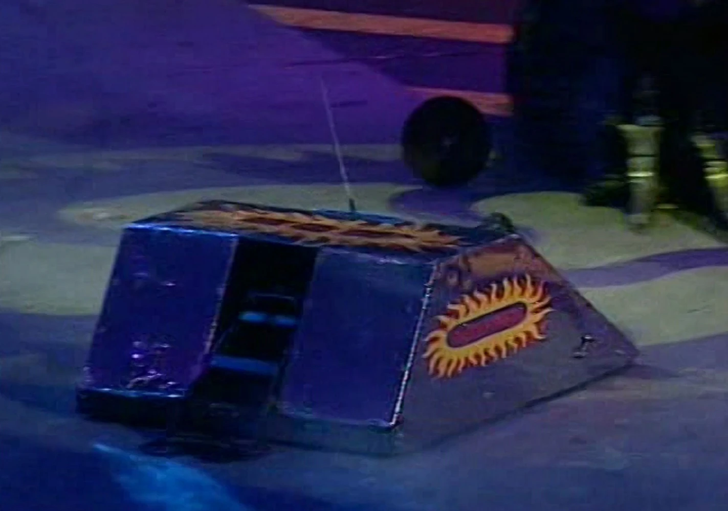 Prometheus started its Gauntlet run by trying to go up the ramp, but it slid back down it. It then opted for the Sentinel route. With a quick burst of speed Prometheus nearly got past the Sentinel, but was pinned. Sir Killalot then came in and pushed Prometheus back and almost into the pit. However Prometheus covered 6.8 metres which was just enough to take it into the Trial.