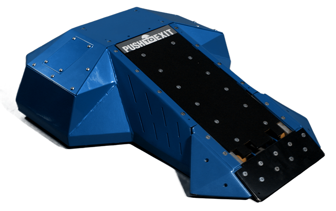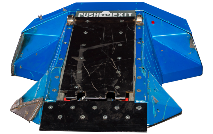 - "Push to Exit is the only front-hinge flipper in the series' main competition. It runs on low-pressure pneumatics and features a one-of-a-kind 'Swan Drive' drive system that's easy to bolt on and off and makes the robot fast and agile."