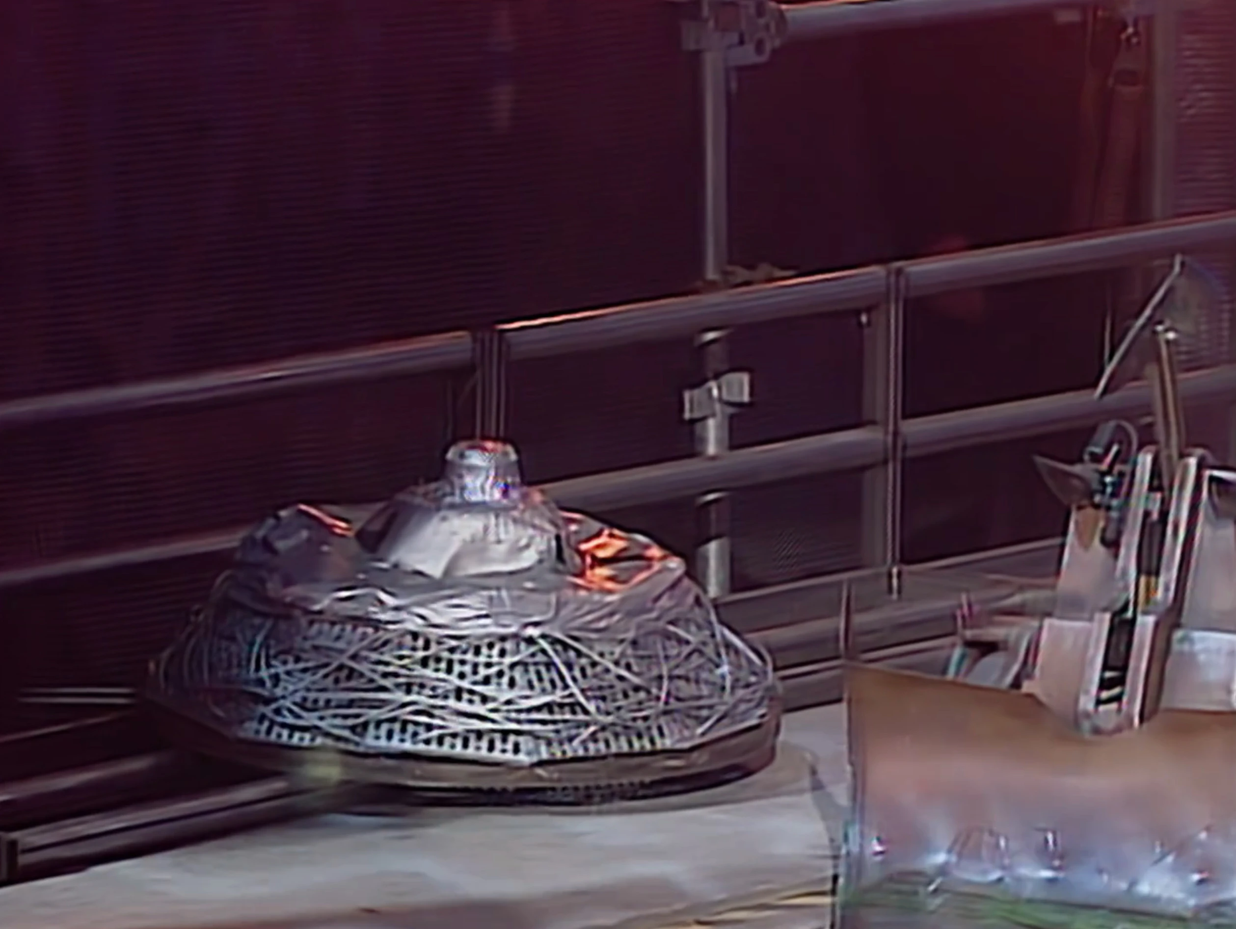 - "This looks like an alien UFO, complete with coloured flashing lights and a siren. It's powered by six 90-watt motors and has hardened steel spikes."