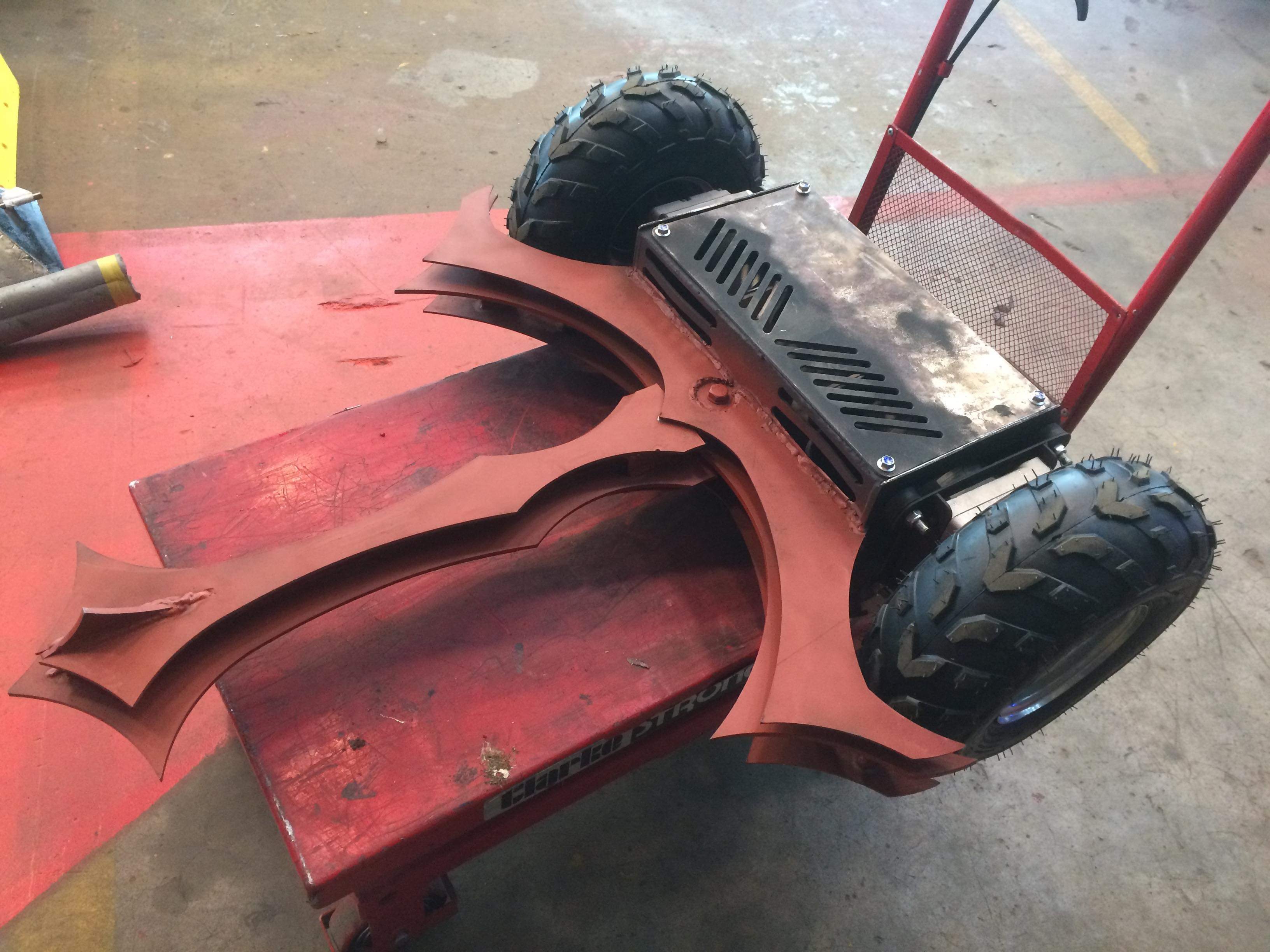 Rabid M8 was a thwackbot, technically lacking an active weapon, instead using a black pronged arm which the robot can use to attack by spinning the robot in place, or by overturning it for a vertical hit. Two prongs also protected the side of Rabid M8, providing further offence when spinning, while protecting the robot's two wheels at the front. These tyres were inflated, and were highly exposed at the sides and rear, although they allowed Rabid M8 to freely overturn itself and run inverted due to its design as an axlebot, and the robot boasted a high top speed. Its armour varied from 3mm steel, to a very thick 25mm HARDOX sheet, and the robot boasted a top speed of 15mph.