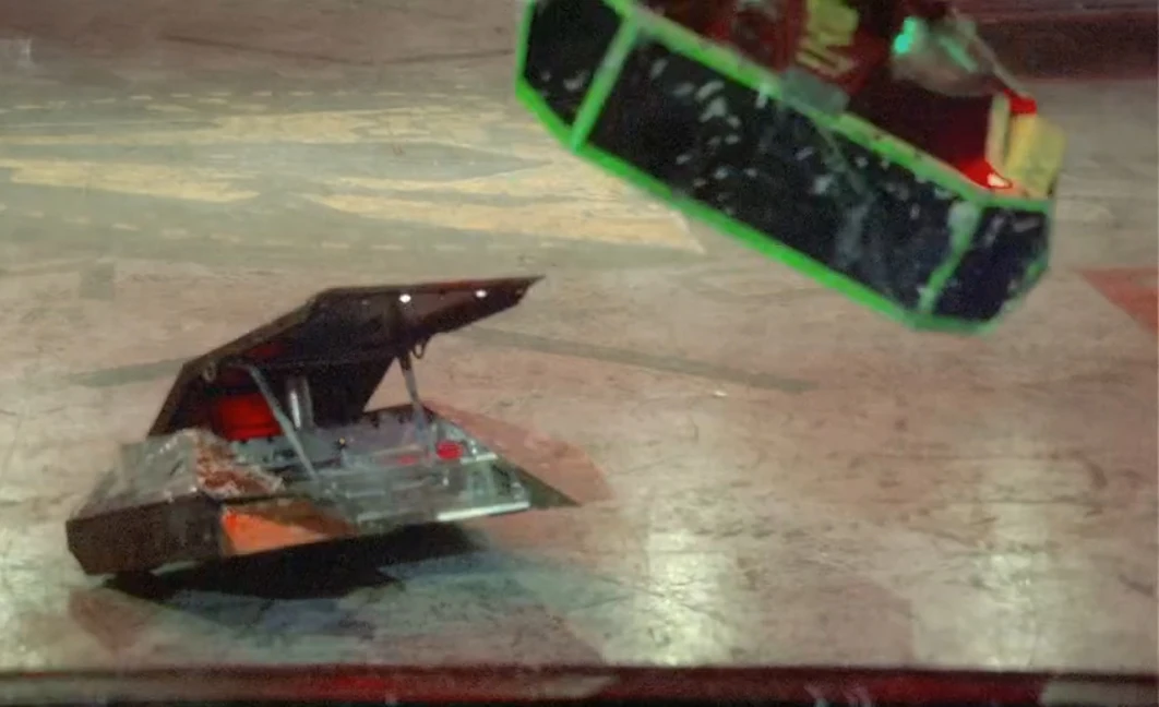 In the Robot Redemption, Rapid faced reigning champion Carbide. The team replaced the broken elastic and attached an entanglement device for this fight.