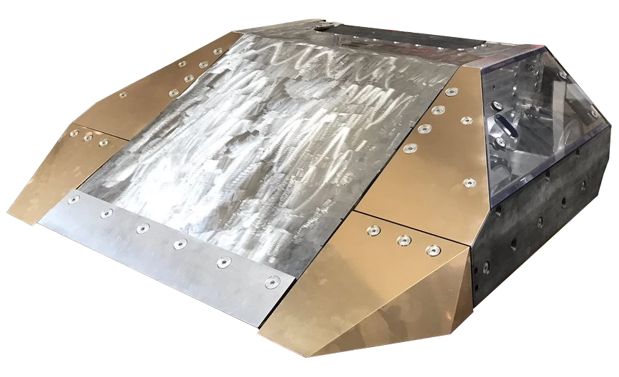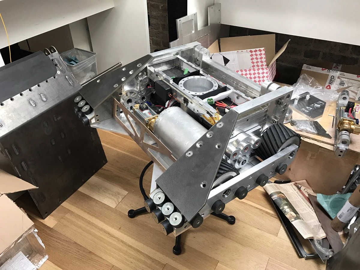 In the Heat Final, Rapid faced Robot Wars veteran Terrorhurtz for the second time in its career, for a place in the Grand Final. In preparation for its opponent's powerful axe, Team RPD applied a layer of HDPE to the top of their robot.