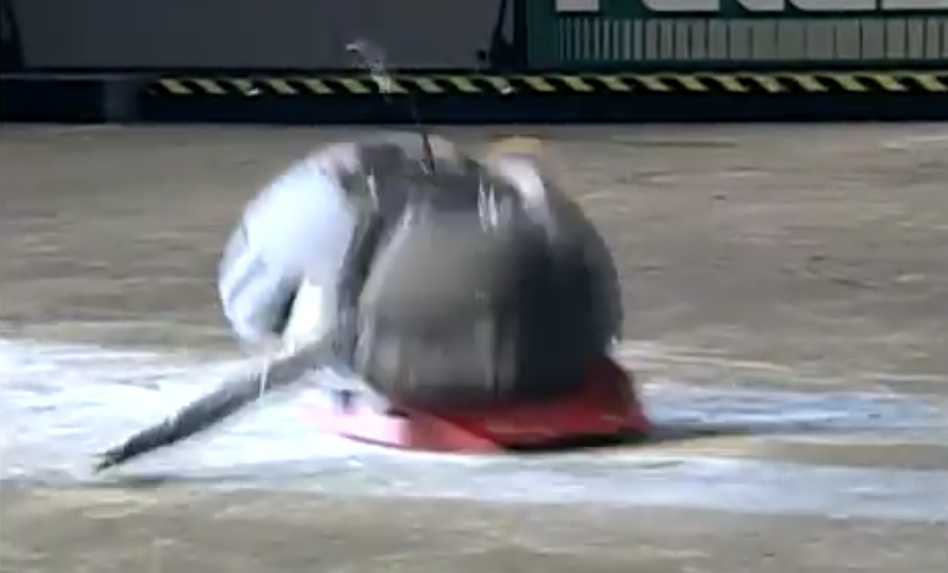In the opening moments, Red 2 avoided an early lunge from Slomo 3, setting up a pushing match between the two machines. This would develop into a four-way scrap also involving Spiny Norman and the smallest segment of Triple Redundancy, moments after the latter began deploying its tape reels. Red 2 got underneath and pushed Spiny Norman over the tape, which snared Will Wright's machine by the right-rear wheel.[21]