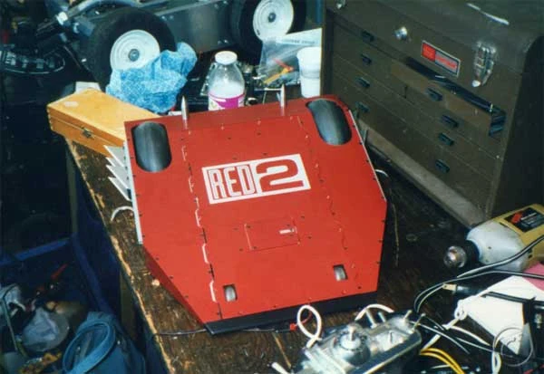 Red 2 (also formatted as Red2[1]) was a featherweight robot built and entered by John Knoll into the 1996 and 1997 US Robot Wars competitions. Featuring a custom CNC-machined chassis and a high-speed drivetrain, it finished its debut year as the Featherweight Face-Off runner-up, losing only to Wedge of Doom. Red 2 also participated in the Featherweight Melee, but lost its first-round battle which would be won by Slomo 3. Both its Face-Off Final and Melee qualifier would be among the battles highlighted in the American Robot Wars 1996 VHS.[2][3]