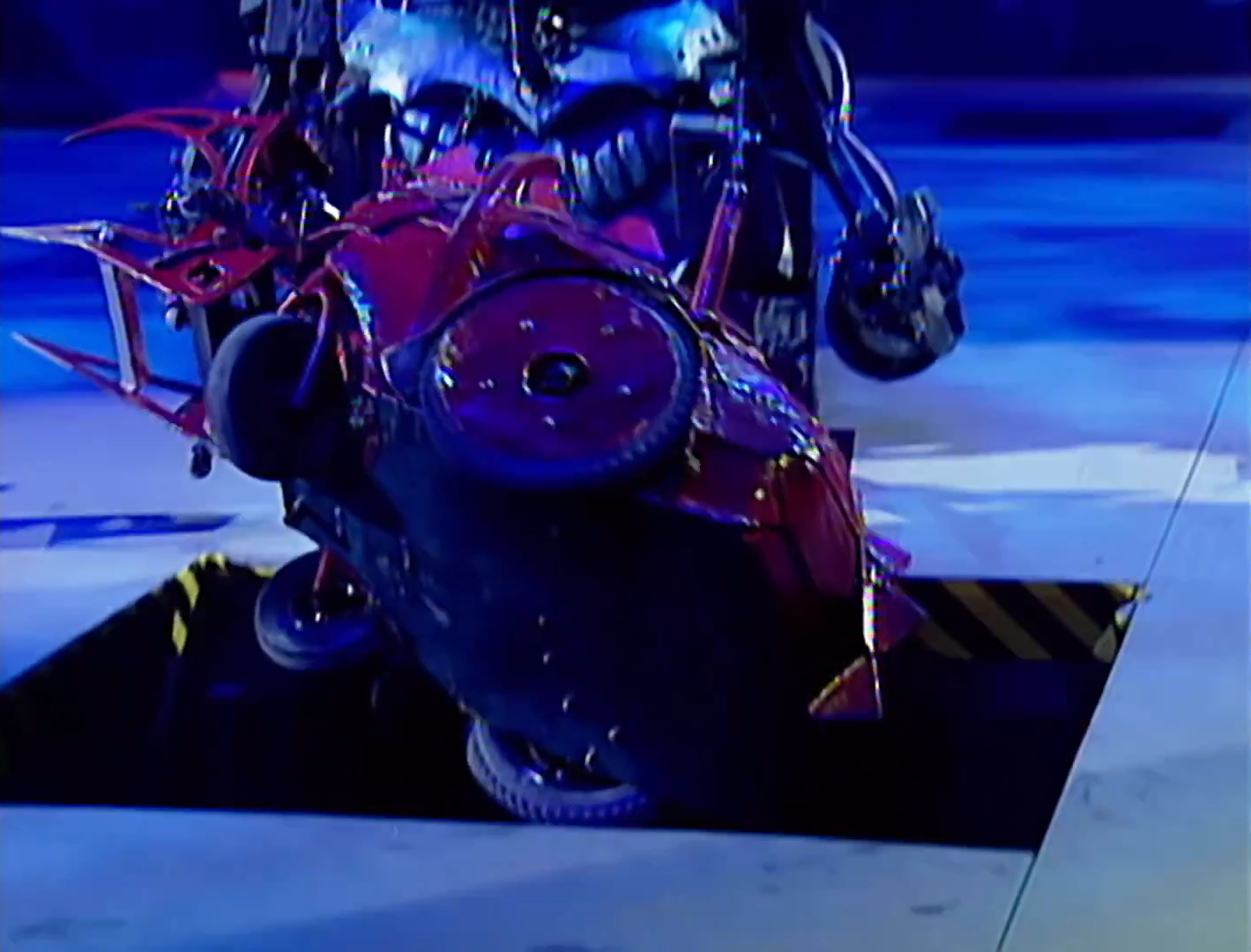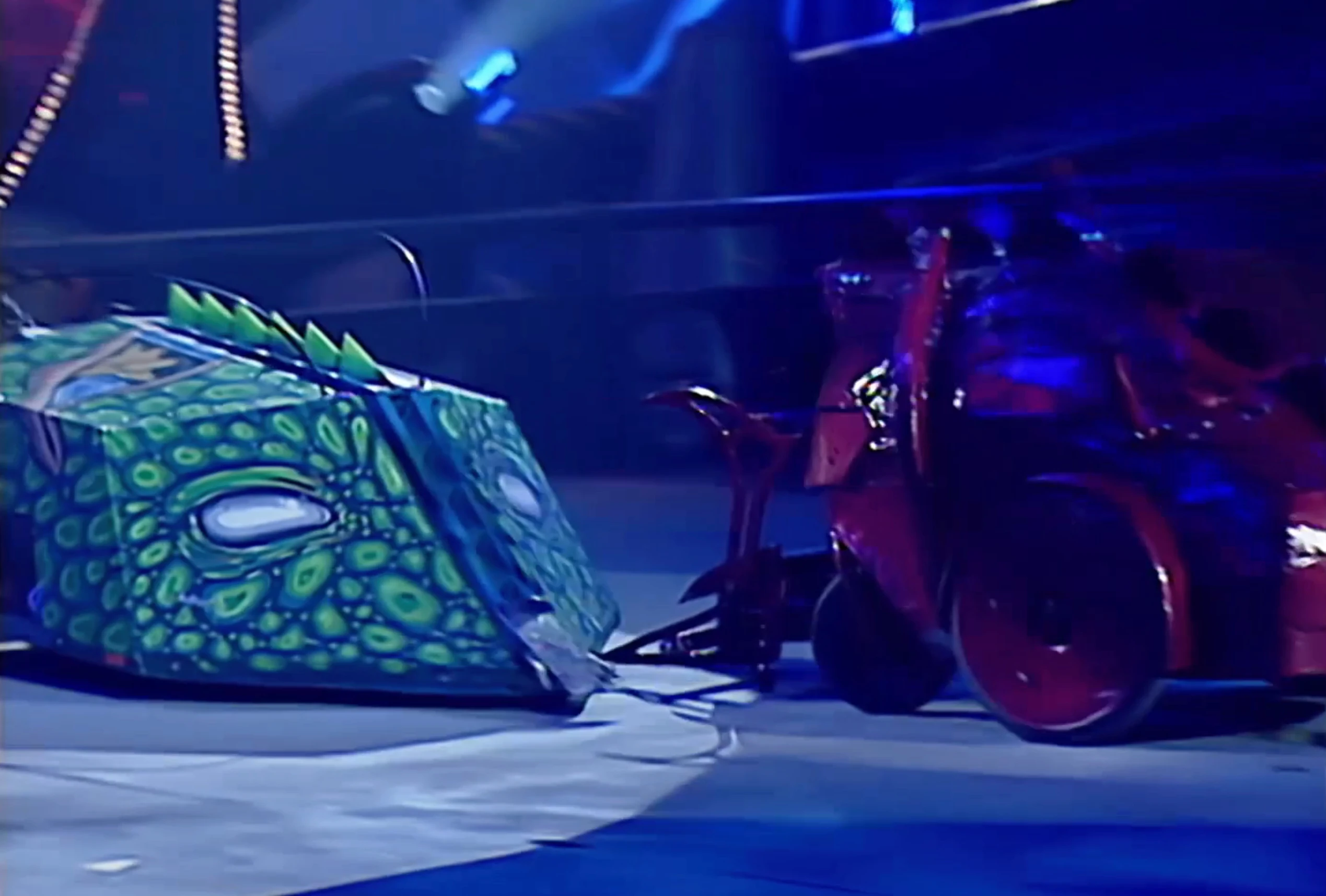 At the start, Red Dragon got off the mark slowly, as the faster Raizer Blade crashed into it. A side-on attack from Raizer Blade then followed, as it pushed Red Dragon around and onto the Floor Flipper. Red Dragon attempted to back into space, but another Raizer Blade slam knocked Red Dragon near to Sergeant Bash.