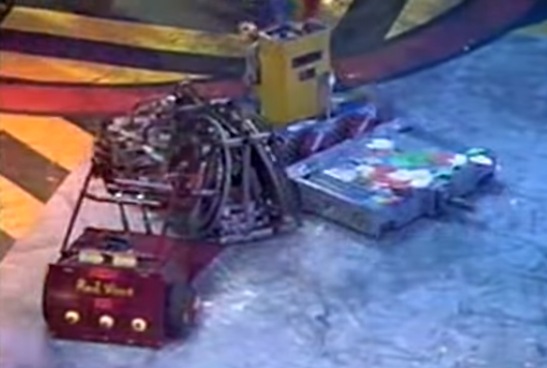 - "Red Virus, at 200 pounds, out of Lakewood California. It's got a lifter and steel fork for weapons, but in the past it's been a bit slow and sluggish."