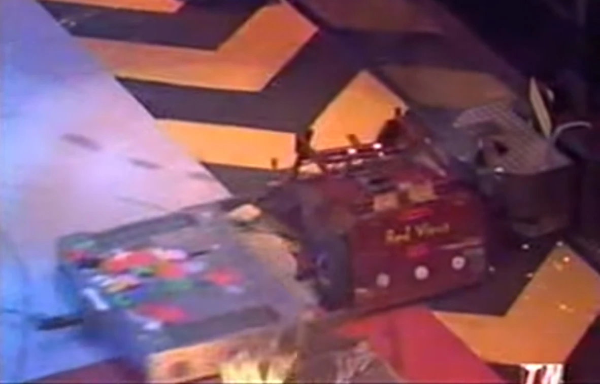 Red Virus drove over the Flame Pit, and pushed against Rippa Raptor's side, but Drillzilla drove into its front and pushed Red Virus up the arena, pushing Rippa Raptor with it. After being pushed to the floor flipper, Red Virus reversed away, but as it turned around, Drillzilla rammed into its side and pushed it to the arena wall, then forced it against an angle grinder. Red Virus tried to turn away from the wall as Drillzilla reversed for another charge, but before it could get away, Drillzilla charged back into it, slamming it against the arena wall.