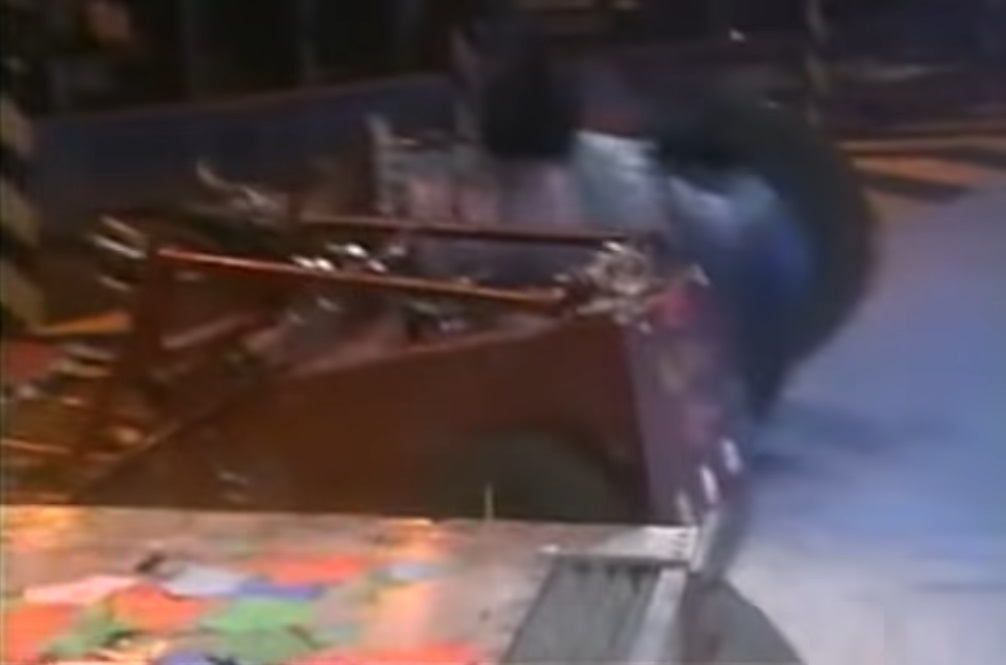 - — Stefan Frank as Drillzilla pushes Conquering Clown against Red Virus, and Red Virus gets away