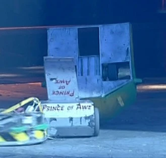 Next, Prince of Awe flipped Rip, but it righted itself, before flipping Bernard and Whipper at the same time. Rip then flipped Bernard onto the arena side wall, but then threw it back onto its wheels after an attempt to flip it out of the arena. Bernard then drove up Rip's flipper, and Rip proceeded to push it towards the Pit. However, Rip couldn't quite turn Bernard in, and it flipped the invertible machine over, and into the CPZ.