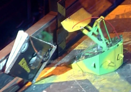 After lifting Cygnus X3 over, Rip was flipped over by Prince of Awe, but it righted itself immediately and slammed into a side-stranded Cygnus X3, pushing it back over onto its wheels in the process. Rip then got caught near the arena wall by Mr. Psycho, and after being lifted slightly by G2, it attempted to dart round the massive House Robot. However, Mr. Psycho picked it up, damaging part of its flipper, before dropping it.