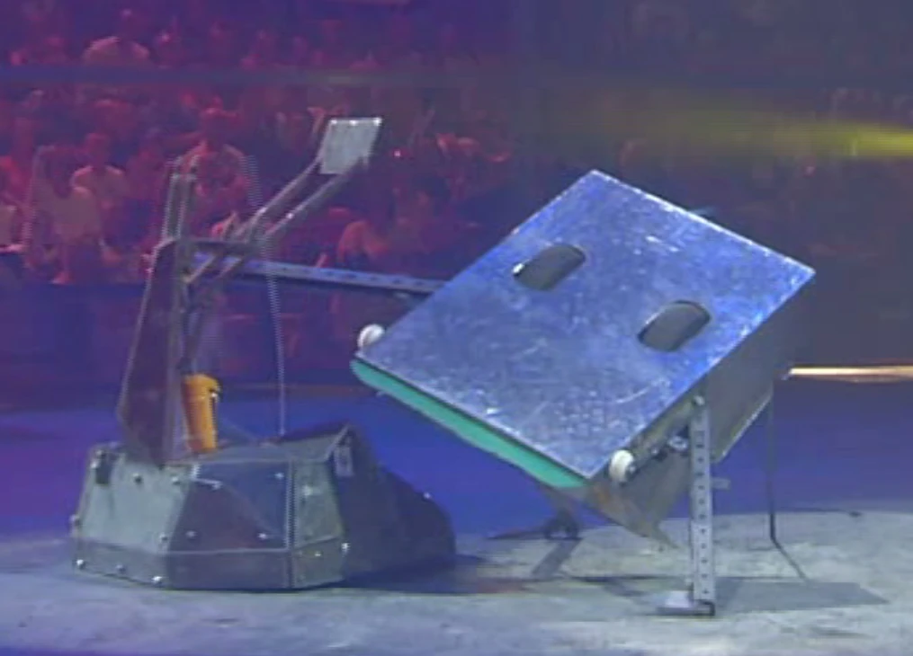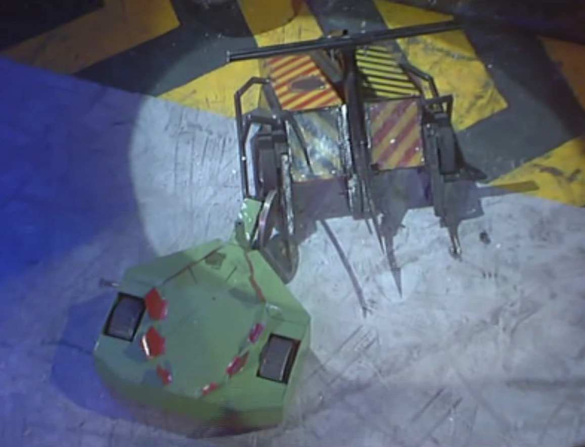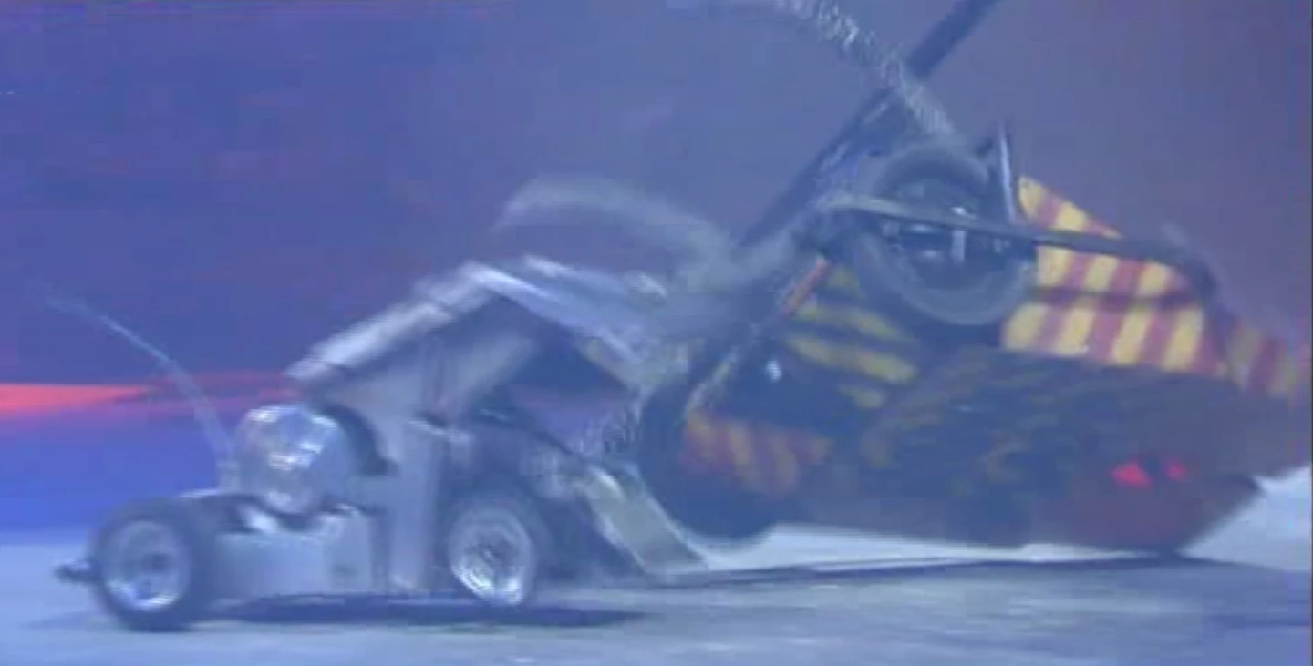 Tetanus pushed Onslaught towards the Flame Pit, but drove over a steam vent, causing it to break down. By now, Onslaught was also immobilised and had stopped trying to self-right. The Judges ruled in favour of Tetanus.