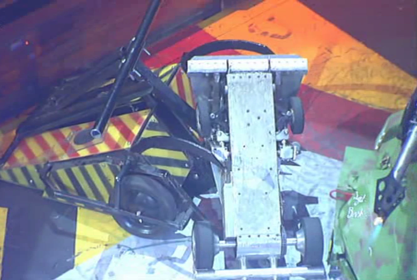 Splinter drove around Bigger Brother in an attempt to avoid its flipper, but soon was lifted by Bigger Brother without it toppling over. It was then tossed over by Bigger Brother before rolling down onto its wheels. Bigger Brother then threw Splinter onto its back again, pushed it to the arena wall then flipped the 17th seeded robot out of the arena, with the fight lasting a mere 34 seconds.