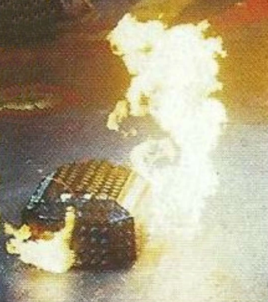 Raizer Blade managed to move off the start, but made no offensive moves as it could still only drive in a circular motion, and Hypno-Disc buffeted it from the side. Hypno-Disc spun up to full speed and knocked the spinning Raizer Blade out in one blow. Hypno-Disc then knocked Raizer Blade into the flame jets.