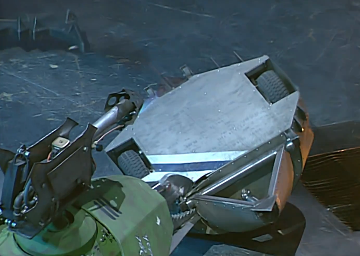 Terror-Bull lifts Dead Metal. Note the out of place plates near Dead Metal's saw