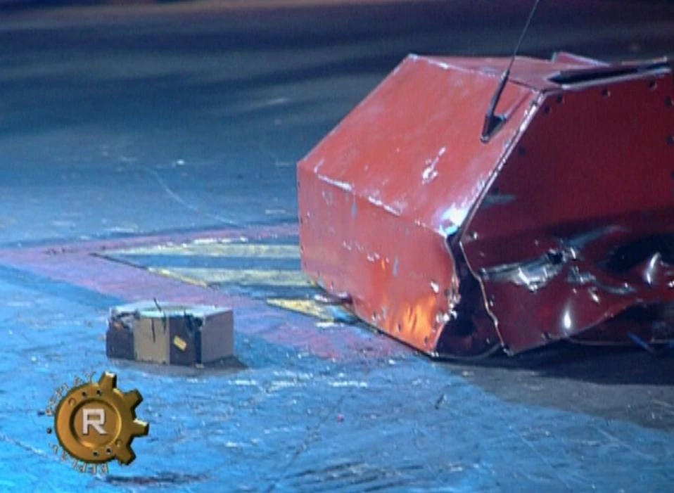 The two robots rammed into each other, but as it had in the melee, Terror-Bull's weapon failed to flip Raizer Blade. Terror-Bull drove forward and back, whilst Raizer Blade could seemingly do not much more than drive in circles. However, Terror-Bull drove over the Flame Pit and set its tail alight. It escaped, but drove back over the flames and continued to burn itself. It finally moved off, but broke down. Raizer Blade moved in and twice attempted to flip Terror-Bull, but failed to do so. It kept pushing at Terror-Bull, with Terror-Bull trying to retaliate as its flipper was still working. When Raizer Blade backed away, however, it became clear that Terror-Bull could not move, and the House Robots closed in.
