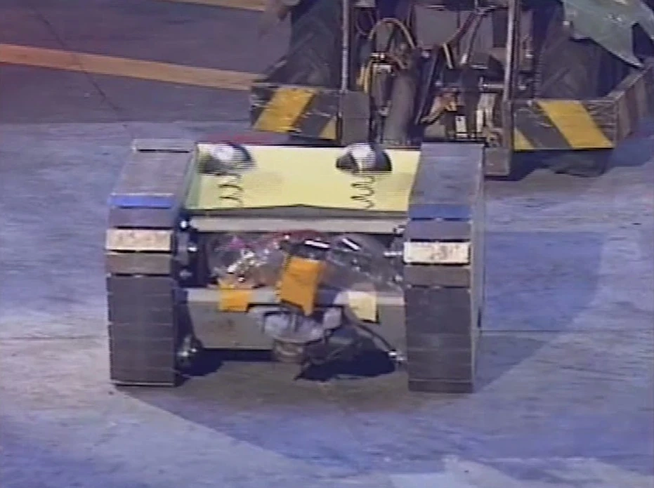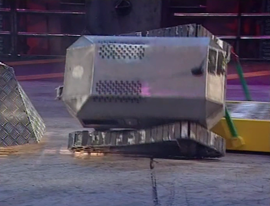 Demon Duck meanwhile had gone into the PPZ and slowed, before breaking down altogether. Berserk was pressurized by the House Robots again, and once again left to roast on the Flame Pit. This time however, there was no escape and Kick Robut was declared the winner of the first and only Super Heavyweight champion in the history of Robot Wars.