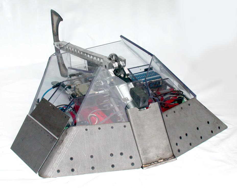The most significant change was that every robot above the featherweight class was to be equipped with a 'working offensive weapon' of some kind.[2] This rule was intended to exclude robots which were armed solely with non-moving weapons, such as ramming blades and static spikes. Competitors with torque reaction weapons and sit-and-spin designs were also affected, while those with interchangeable weapons were now required to employ active weaponry in each eligible configuration.