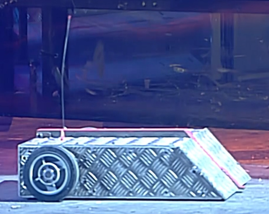 - Note: Thunderpants broke down in the entry gate and never made it into the arena, so the fight carried on with just three competing robots.