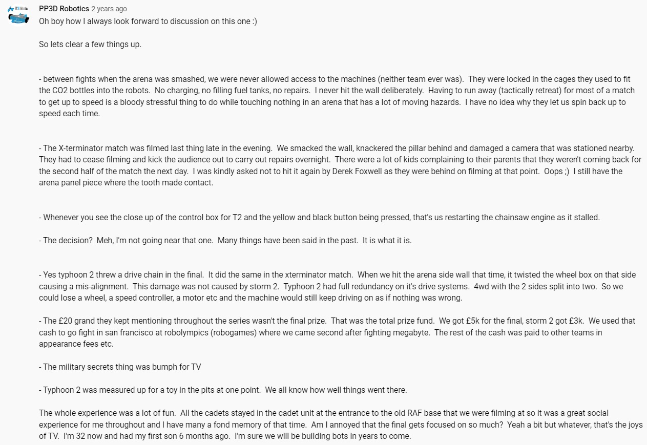 - ↑ 'Robot Wars - Fifth Wars, Extreme, World Championship', Robot Wars Discussion Forum, 15th April 2001 (archived)